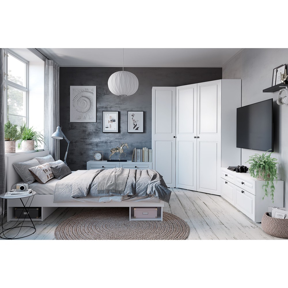 Сквозная коллекция Софт сочетает в себе лаконичный дизайн и продуманное наполнение модулей. Изюминку белому цвету корпуса добавляют фрезеровка на фасадах и минималистичные металлические ручки черного цвета. Модули практичны благодаря матовому покрытию фасадов, на котором не остается отпечатков пальцев и царапин.