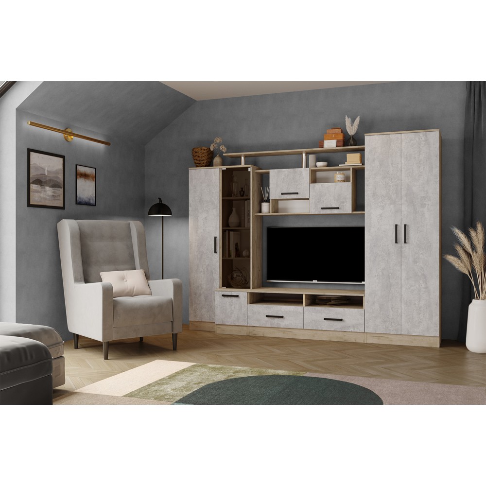 Гостиная Оскар-5 обладает отличной функциональностью и комфортом при ежедневной эксплуатации. Эти необходимые свойства обеспечивает наличие нескольких вместительных секций, позволяющих с удобством разместить все нужные вещи. Продуманное цветовое решение мебели гарантирует ее совместимость с практически любым современным интерьером.