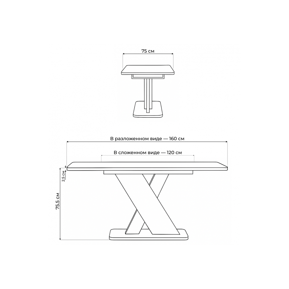 Длина стола в разложенном виде