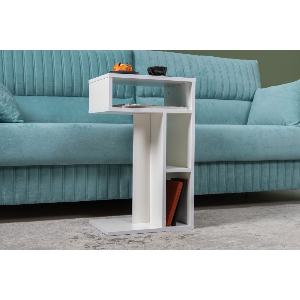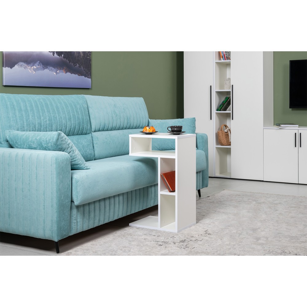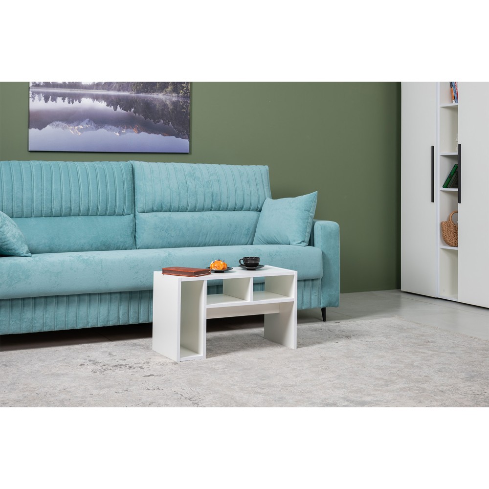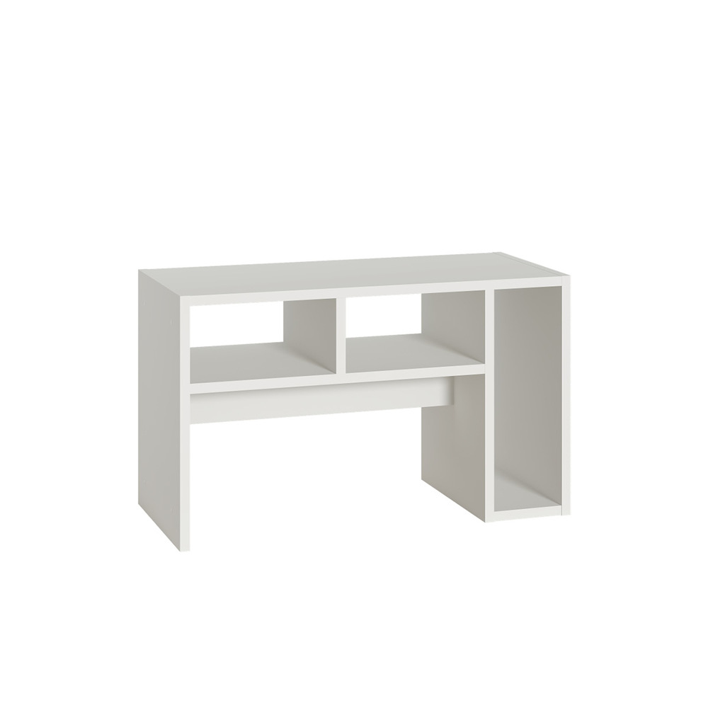Невысокий стол Эйр 12.114 можно использовать как журнальный или как подставной для ноутбука. Столик имеет возможность размещение в двух положениях - горизонтальном и вертикальном. Конструкция стола с открытыми полками.