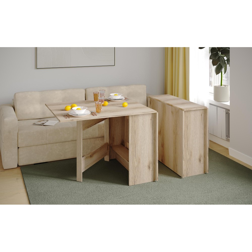 Стол обеденный раскладной станет отличным решением для организации обеденной зоны на небольшой кухне. В собранном виде модель занимает минимум места: Вы можете спрятать стол в шкаф, на балкон или любую свободную нишу вдоль стены и не загромождать пространство.