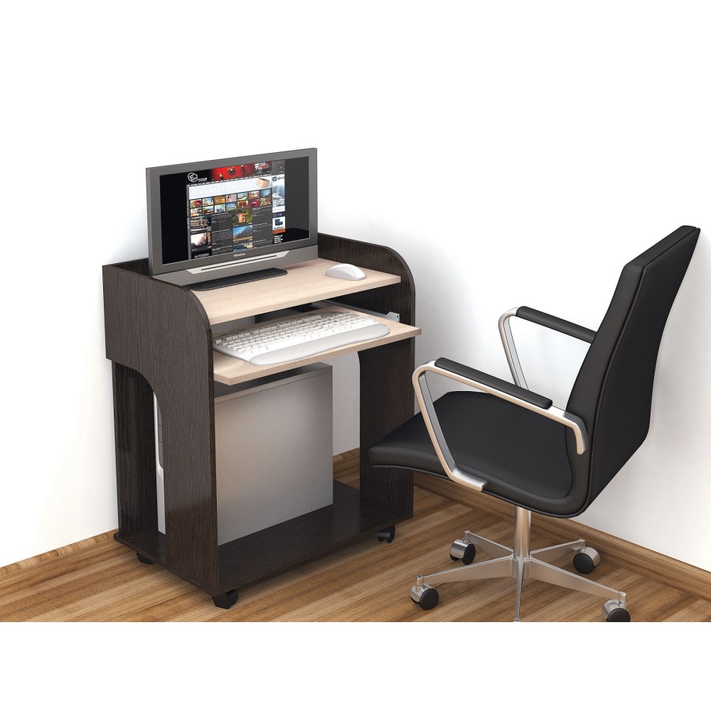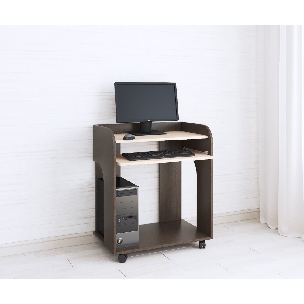 Грета-10 - модель компьютерного стола для любителей минимализма и порядка. Оснащен всем самым необходимым: компактной столешницей, на которой поместится моноблок или ноутбук, нижней полкой для процессора и выезжающей открытой полкой на роликовых направляющих для клавиатуры. Размер стола позволит разместить его даже в небольшом помещении, не загромождая пространство. А колесные опоры - свободно передвигать стол по комнате.