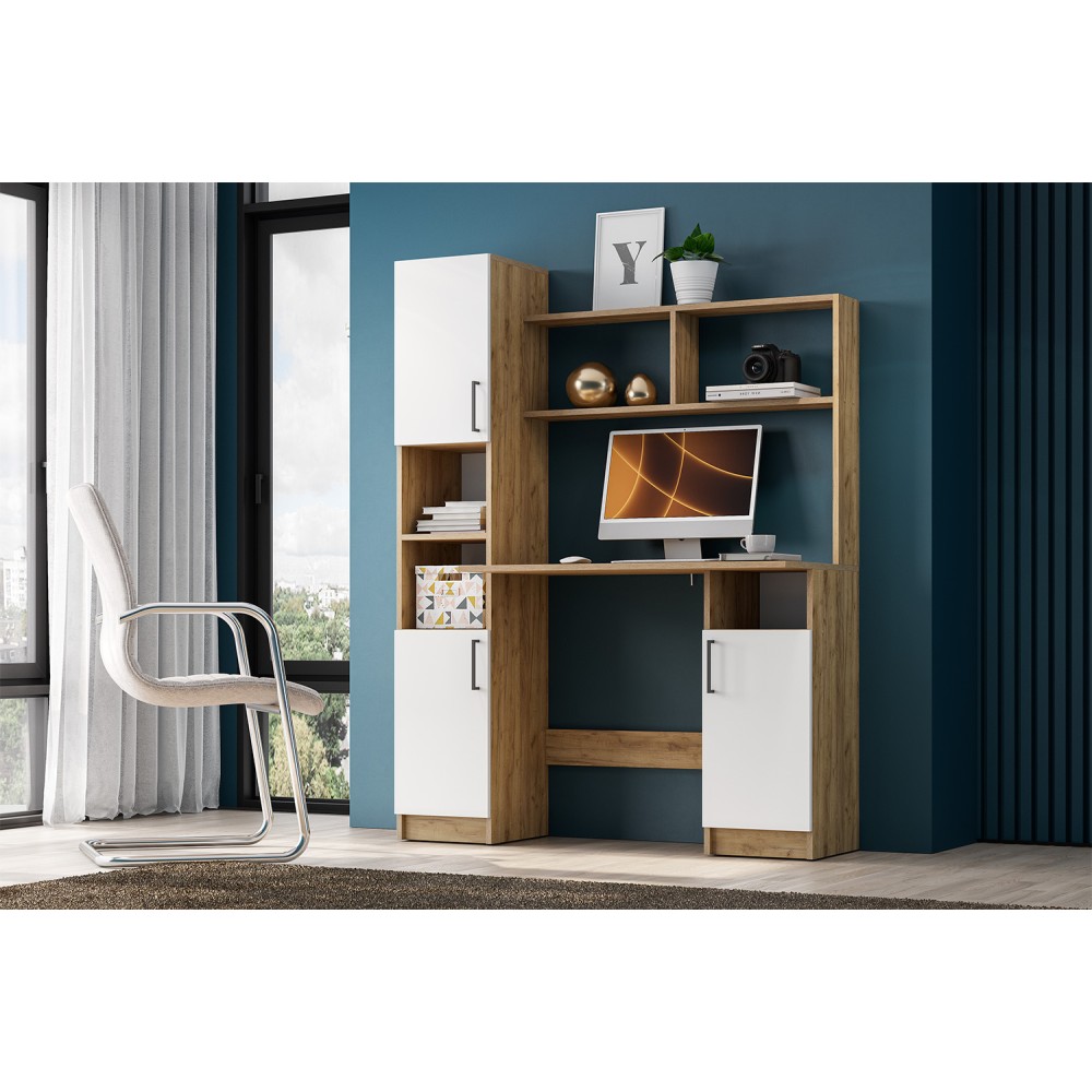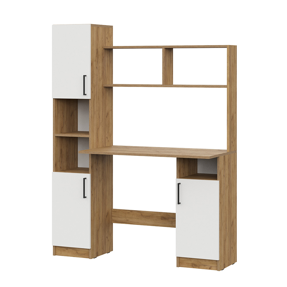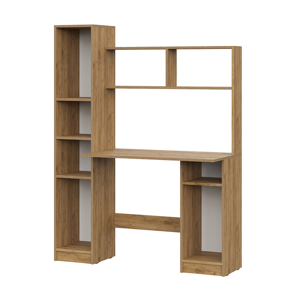 Просторная столешница предоставляет достаточно места для размещения компьютера, монитора, клавиатуры и других аксессуаров. Полки идеально подходят для размещения книг, документов, папок и других офисных принадлежностей.