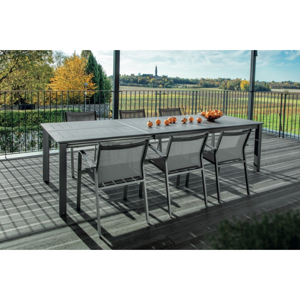 Данная продукция возится только под заказ с фабрики по предоплате. Panarea- это раздвижной стол из алюминия, подходящий как для обстановки интерьеров, так и для садов, бассейнов, больших террас и любых других открытых пространств. Его каркас выполнен из алюминия, а верх - из листа алюминия толщиной 5 мм. Стол с современным и элегантным стилем особенно подходит для открытых пространств из-за его устойчивости к атмосферным воздействиям, но также часто он используется для обстановки внутренних интерьеров: столовых и гостиных.