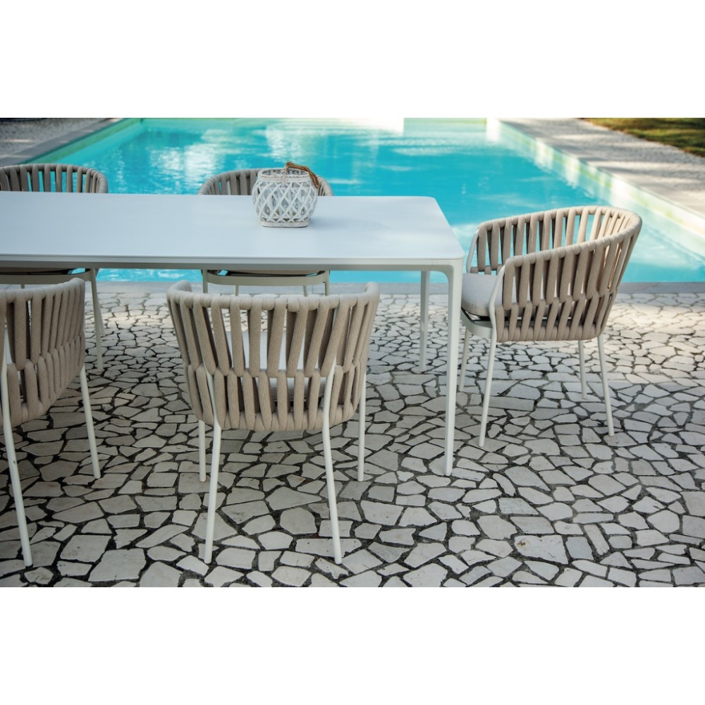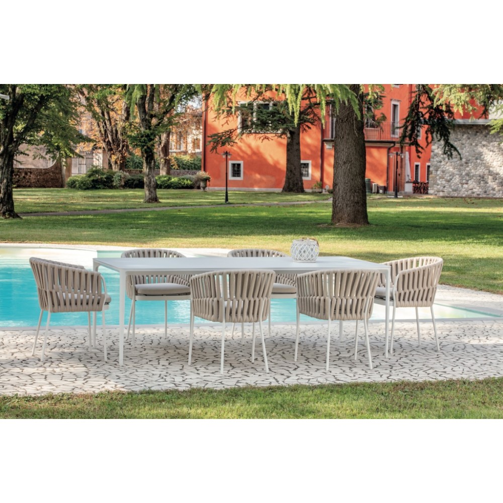 Данная продукция возится только под заказ с фабрики по предоплате. Bahamas- это обеденный стол из алюминия, подходящий как для обстановки интерьеров, так и для садов, бассейнов, больших террас и любых других открытых пространств.Стол с современным и элегантным стилем особенно подходит для открытых пространств из-за его устойчивости к атмосферным воздействиям, но также часто он используется для обстановки внутренних интерьеров: столовых и гостиных.