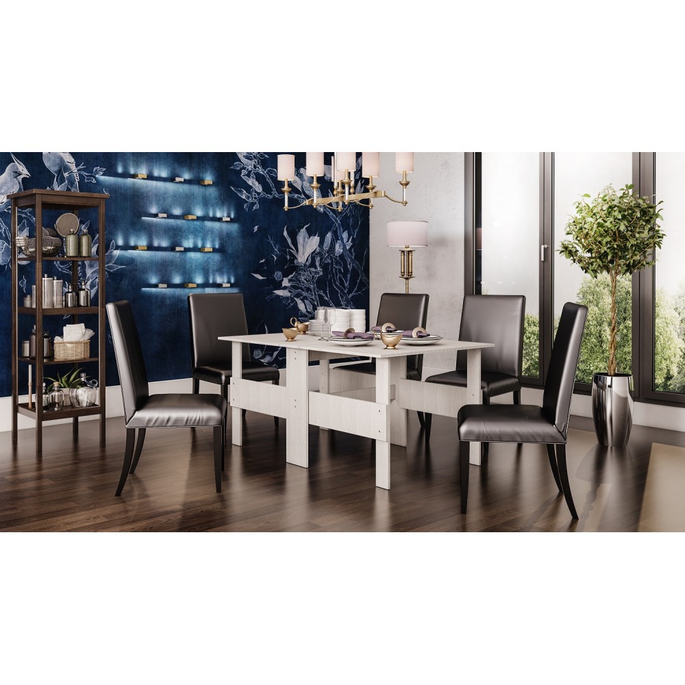 Стол обеденный раскладной Стандарт станет отличным решением для организации обеденной зоны на небольшой кухне. Выполнен из прочного ЛДСП в декоре "ясень белый". Размер столешницы в разложенном виде - 100х160 см, что позволит Вам с комфортом разместить за одним столом всех членов семьи и гостей. В собранном виде модель занимает минимум места: Вы можете спрятать стол в шкаф, на балкон или любую свободную нишу вдоль стены и не загромождать пространство.