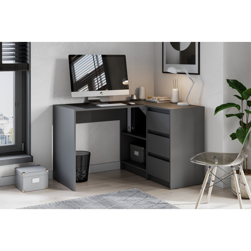 Письменный стол Айден — это компактный и стильный вариант для работы или учебы. Стол оснащен выдвижными ящиками для хранения документов, что делает его идеальным решением для офисов и домашних рабочих мест. Каждый ящик имеет плавный механизм открывания, что обеспечивает легкий доступ к содержимому.