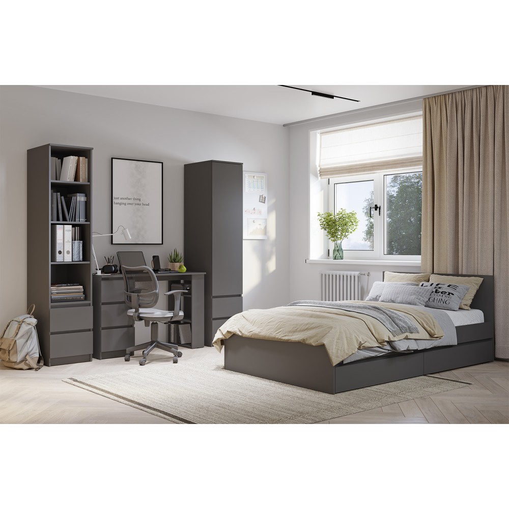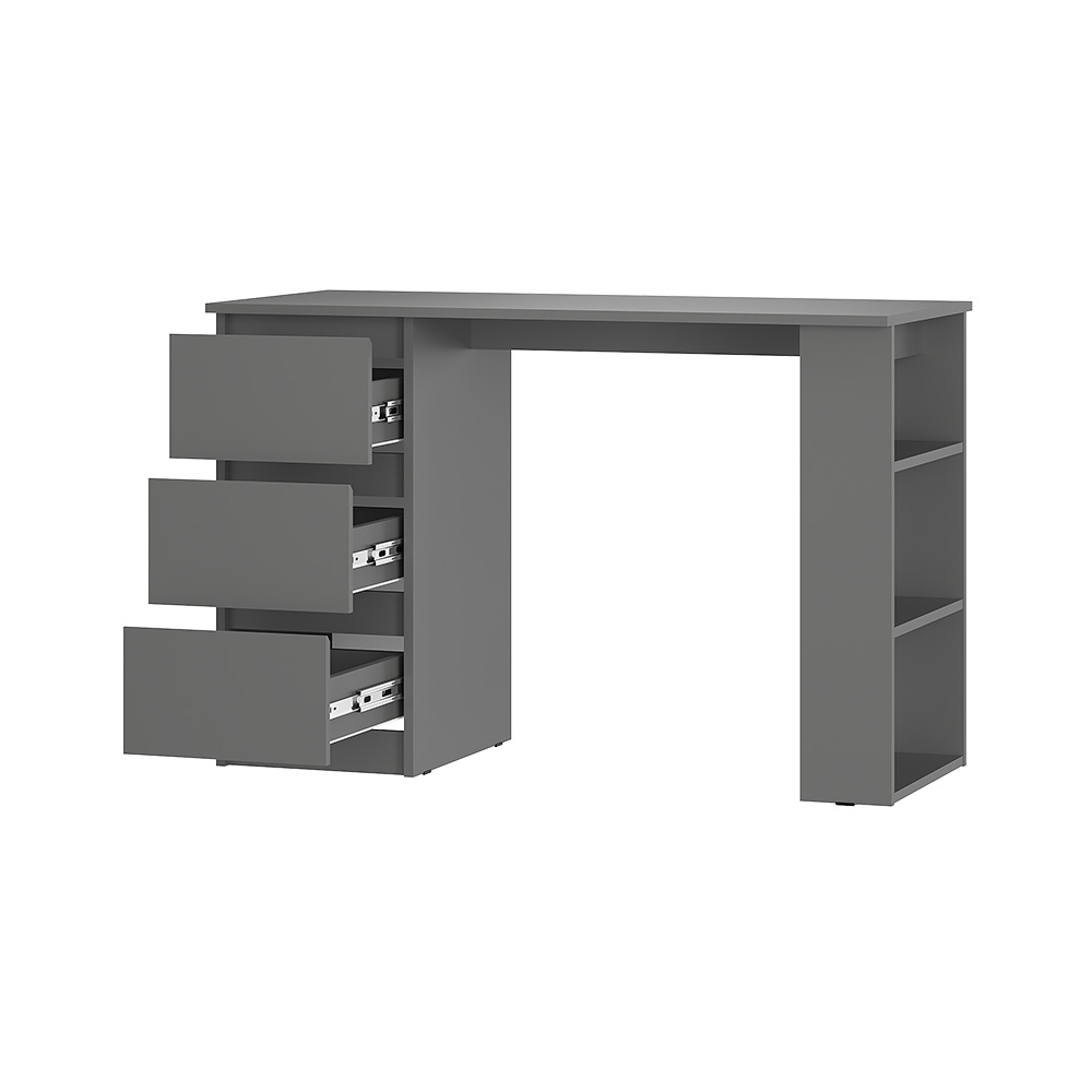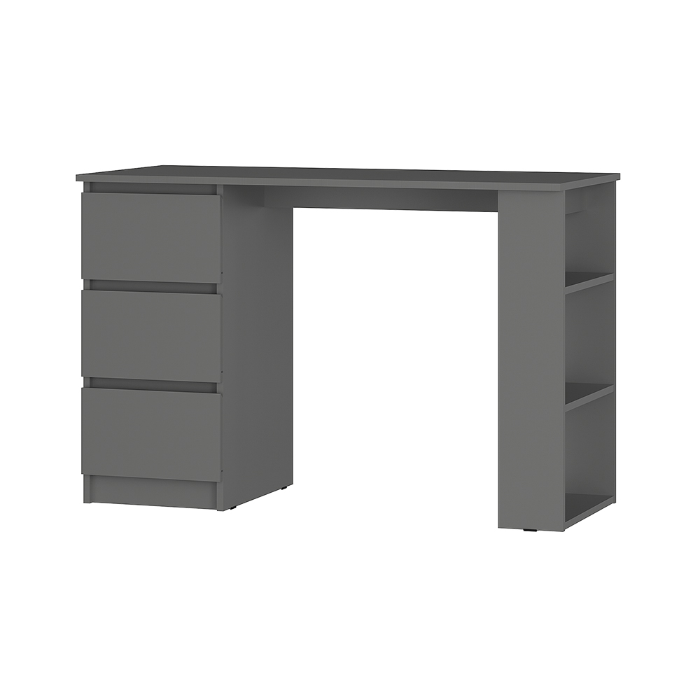 Стол письменный «Симпл» (ПС-07) — компактный, но просторный стол отлично подойдет для работы и учебы. На большой столешнице очень удобно рисовать или делать домашние задания. Здесь найдётся место как для ноутбука, так и для монитора с клавиатурой. Тумба с тремя выдвижными ящиками на шариковых направляющих для школьных принадлежностей и три открытых полки собираются зеркально.