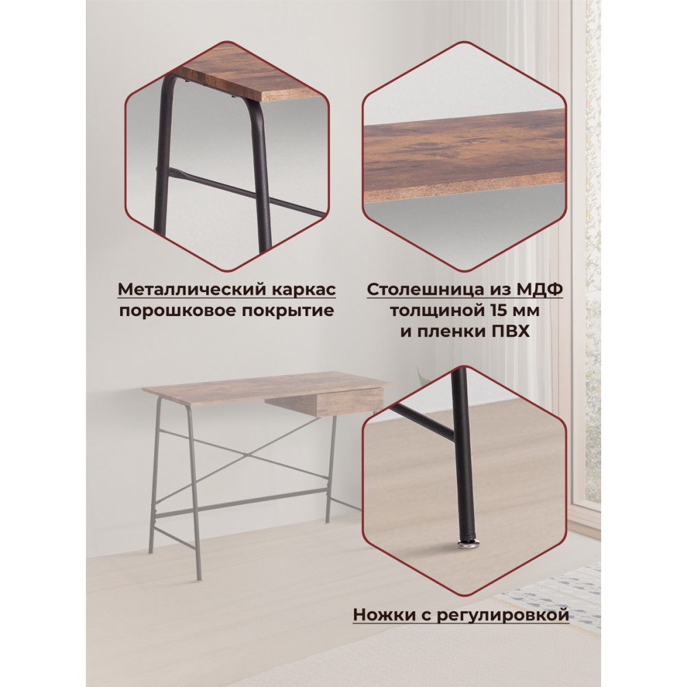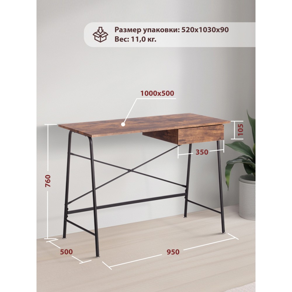 Стильный компьютерный стол WD-12 прекрасно впишется как в домашний рабочий кабинет, так и в современный офис. Широкая прямоугольная столешница, выполненная из МДФ толщиной 15 мм, удобна и вместительна. Столешница обтянута пленкой ПВХ, что позволяет модели сохранить свой первоначальный вид продолжительное время. Прочный каркас компьютерного стола изготовлен из металла с порошковым покрытием. Практичная модель имеет дополнительный ящик для хранения документов или письменных принадлежностей. Устойчивые ножки стола регулируются по высоте для устранения неровности пола. Элегантное сочетание черного каркаса и коричневой столешницы выглядит уютно, стильно и лаконично. Компьютерный стол WD-12 способен выполнять не только эстетическую функцию, он может дополнить дизайн дома или офиса, придать обстановке особую очаровательность и уют. Стол очень прост в сборке, инструкция по сборке прилагается.