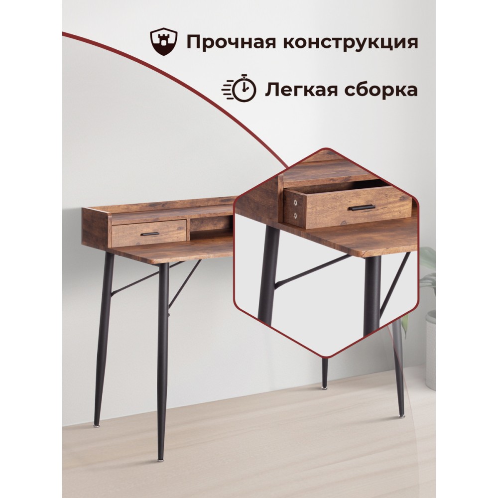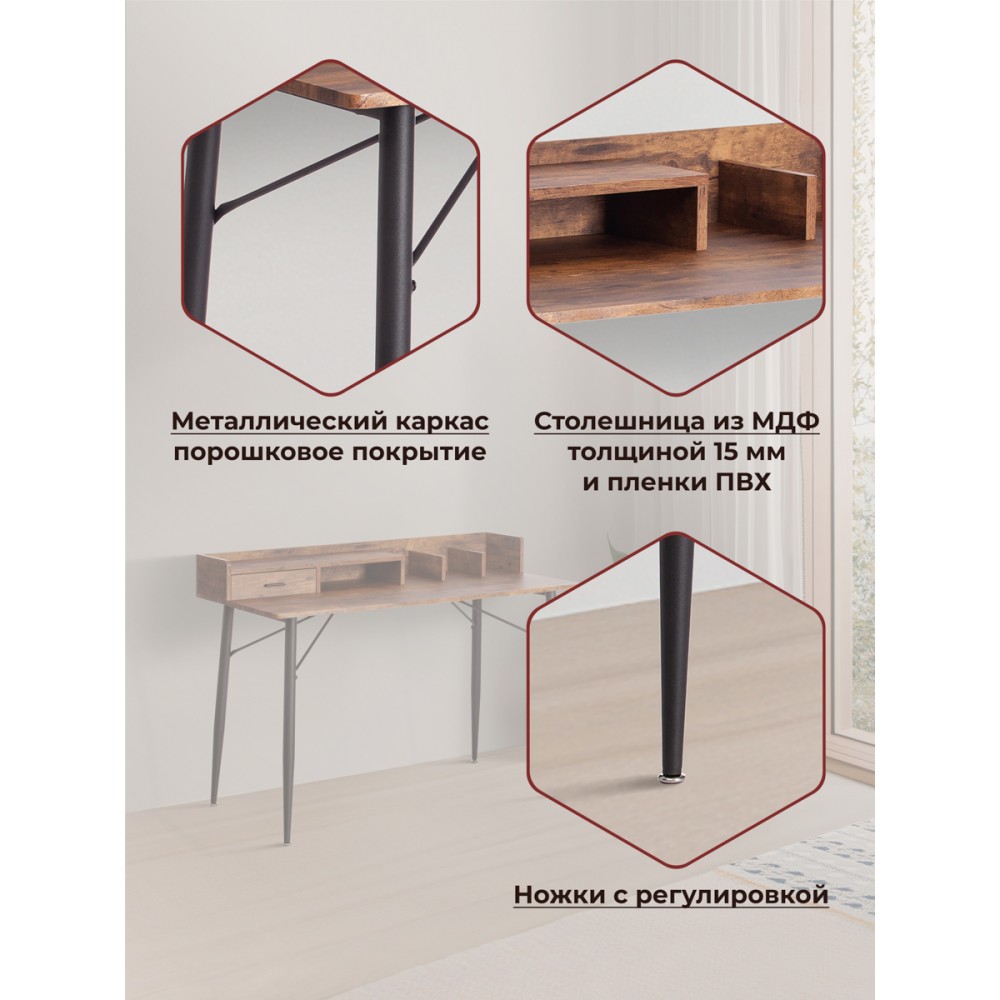 Уникальный дизайн компьютерного стола WD-13 добавит элемент индивидуальности и эксклюзивности вашему дому или офису, создаст приятный микроклимат в вашем рабочем пространстве. Широкая прямоугольная столешница изготовлена из МДФ толщиной 15 мм и обтянута пленкой ПВХ. Такой экологичный и влагостойкий материал выдерживает сильные нагрузки, не деформируется под воздействием температур, имеет долгий срок службы. Изящные тонкие ножки дополнительно регулируются для устранения неровности пола и для более устойчивого положения стола. Прочный каркас выполнен из металла с порошковым покрытием, который обладает износостойкостью и надежностью. Компьютерный стол оснащен вместительным ящиком, а также отделениями для документов или письменных принадлежностей. Лаконичное сочетание черного основания и коричневой столешницы – идеальное решение для любого помещения. Оригинальный дизайн, крепкое основание, изысканные ножки, удобная конструкция и прочная столешница компьютерного стола WD-13 будут доставлять удовольствие и восхищать своего владельца долгие годы. Стол очень прост в сборке, инструкция по сборке прилагается.