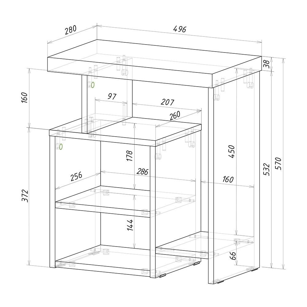 Уютный и стильный журнальный столик для дома, который прекрасно дополнит интерьер любой комнаты. Он идеально подходит для гостиной, спальни, зала или балкона. Полки обеспечивают удобство размещения журналов или комнатных цветов.