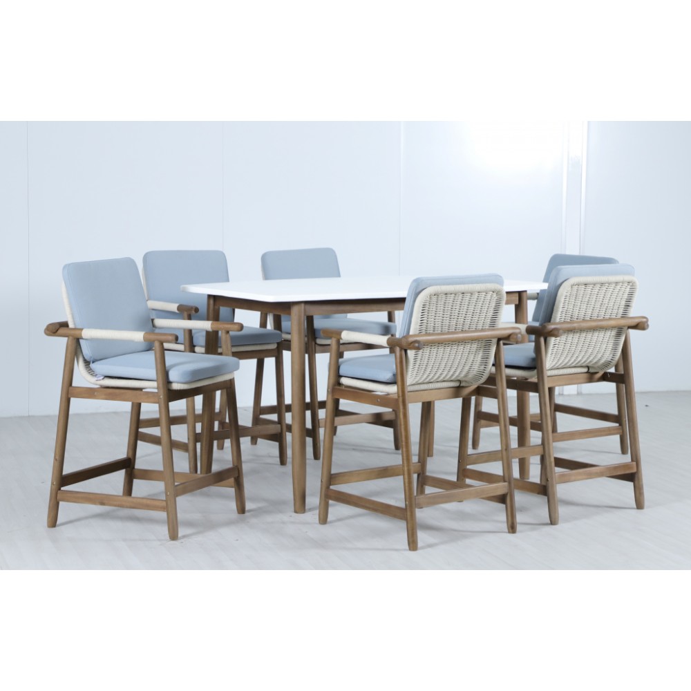 Столешница из искусственного камнядля барного стола. Apoyo - это стильная коллекция уличной мебели из массива АКАЦИИ, в которой сочетаются натуральное верёвочное (роуп) плетение, тёплая текстура дерева и комфортные подушки. Превосходноерешение для террасы или веранды, подходящее для тех, кто ценит долговечность и эстетический вид уличной мебели Особенности: Столешница выполнена из искусственного камня Cement OFF WHITE, износостойкая и легко чистящаяся.