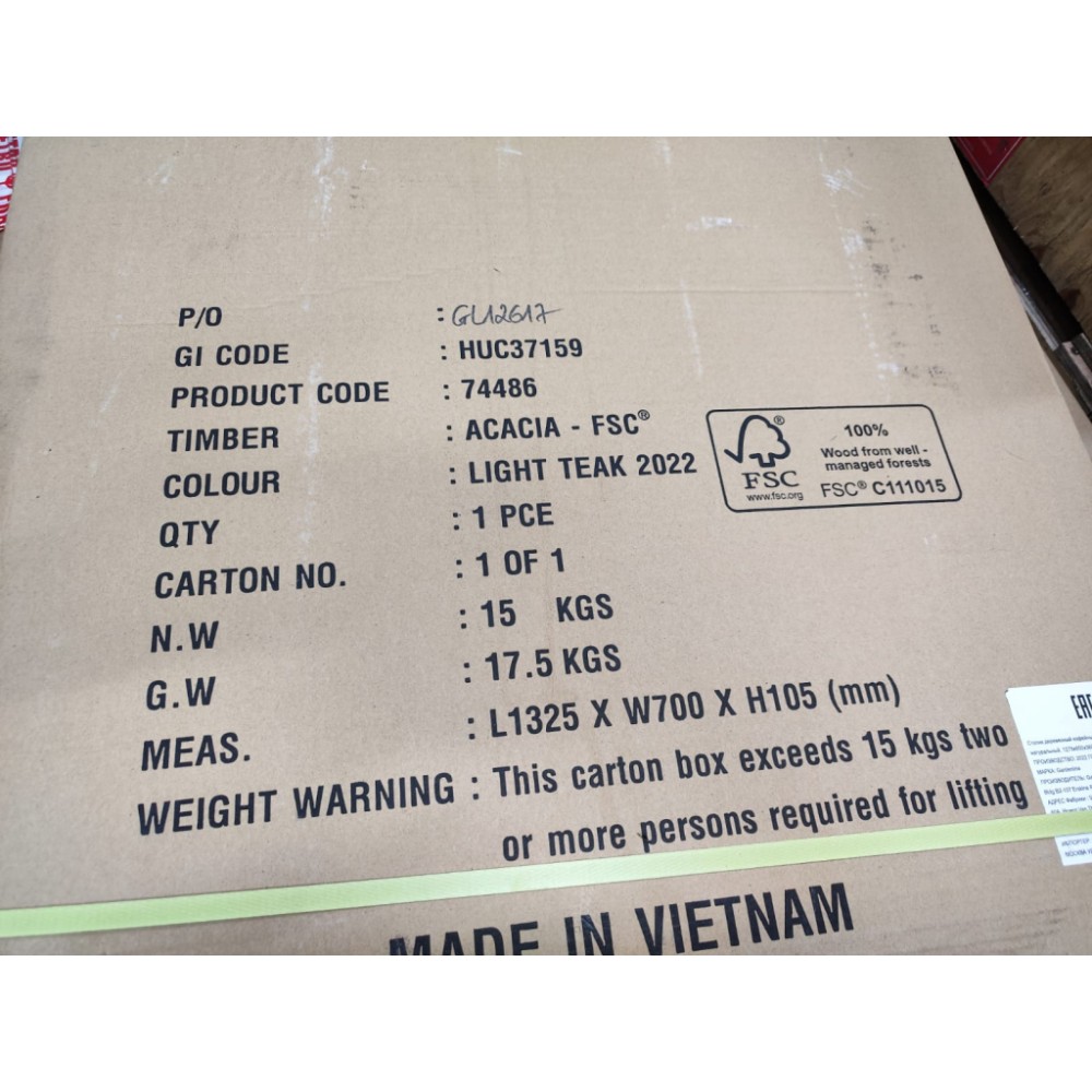 Кофейный столик Ravona изготовлен из древесины тропической АКАЦИИ (FSC), которая хорошо устойчива к атмосферным воздействиям. Цвет этой натуральной твердой древесины представляет собой натуральный цвет с мелкой текстурой, придающий древесине приятный теплый вид. Ravona - это стиль и элегантность на Вашей веранде. Особенности: Материал - АКАЦИЯ, отделка экомаслом тик Light #01A. Древесина, из которой изготовлена мебель, имеет сертификацию FSC (Forest Stewardship Council) - гарантия качества и происхождения древесины. Знак FSC - показатель того, что продукция происходит из леса, в котором ведется экологически и социально ответственное лесное хозяйство. Благодаря своей долговечности, прочности и устойчивости к вредителям эта древесина была создана для изготовления садовой мебели. Страна происхождения древесины: Вьетнам, Малайзия. Средняя плотность древесины: 550 кг/м3. Анодированная фурнитура из нержавеющей стали.
