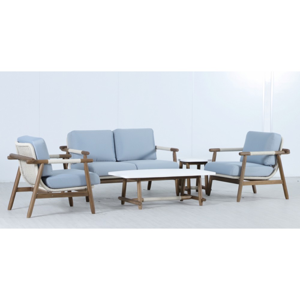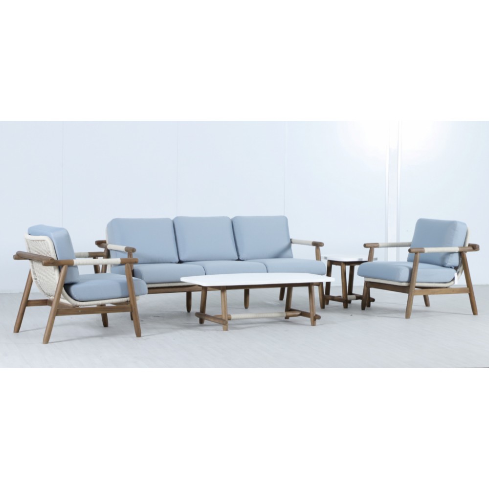 Apoyo - это стильная коллекция уличной мебели из массива АКАЦИИ, в которой сочетаются натуральное верёвочное (роуп) плетение, тёплая текстура дерева и комфортные подушки. Превосходноерешение для террасы или веранды, подходящее для тех, кто ценит долговечность и эстетический вид уличной мебели Особенности: Материал - АКАЦИЯ, отделка экомаслом грецкий орехTPW #4. Древесина, из которой изготовлена мебель, имеет сертификацию FSC (Forest Stewardship Council) - гарантия качества и происхождения древесины. Знак FSC - показатель того, что продукция происходит из леса, в котором ведется экологически и социально ответственное лесное хозяйство. Благодаря своей долговечности, прочности и устойчивости к вредителям эта древесина была создана для изготовления садовой мебели. Страна происхождения древесины: Вьетнам, Малайзия. Средняя плотность древесины: 550 кг/м³. Столешница выполнена из искусственного камня Cement OFF WHITE, износостойкая и легко чистящаяся.