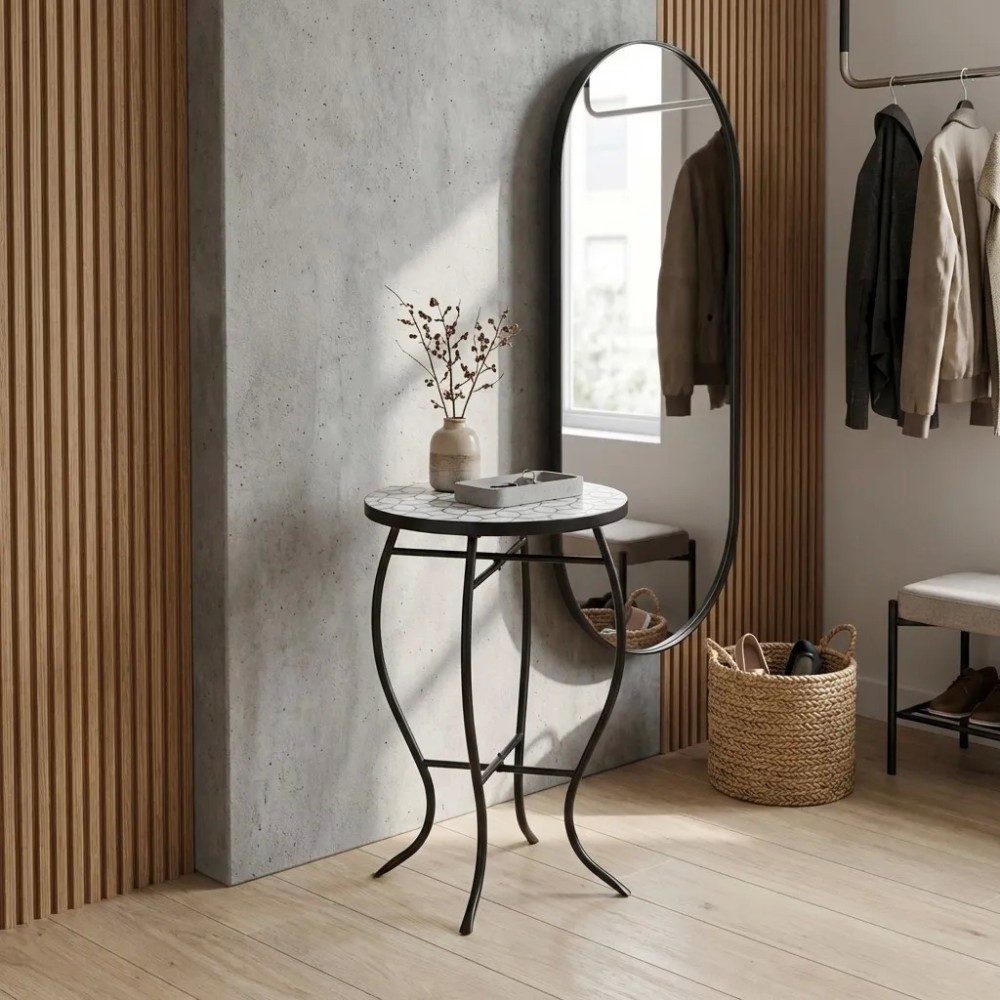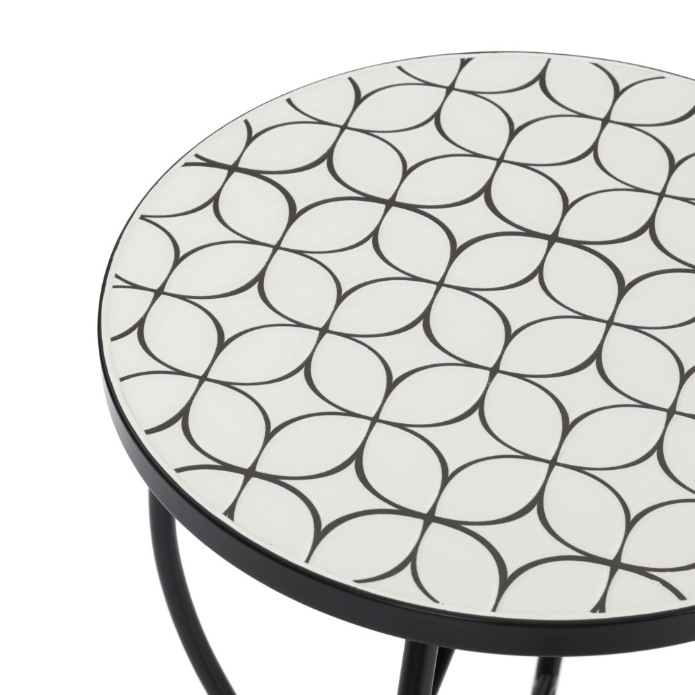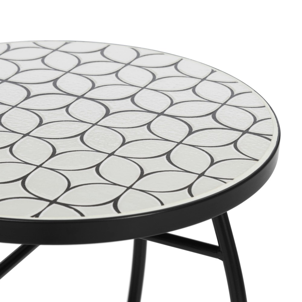 Компактный декоративный столик Secret de Maison Дижон/Dijon— стильное и практичное решение для балкона, террасы, дачи или интерьера. Модель выполнена из прочного металла в сочетании с элегантной столешницей из белой мозаики и черного металла, что придает изделию изысканный европейский стиль и делает его акцентным элементом в любом пространстве. Круглая форма и компактные размеры (диаметр 35,5 см, высота 53,5 см) позволяют использовать столик даже в небольших помещениях — на балконе, лоджии или в уютной зоне отдыха. Металлическая конструкция обеспечивает устойчивость и надежность, а максимальная нагрузка до 40 кг позволяет использовать столик не только как декоративный, но и как полноценный функциональный элемент мебели — для напитков, книг, аксессуаров или декора. Благодаря универсальному дизайну столик гармонично вписывается как в домашний интерьер, так и в уличное пространство, подходит для использования в саду, на террасе, в кафе или зоне отдыха. Столик Дижон/Dijon—можно использовать как кофейный столик, приставной столик, садовый столик или столик для балкона. Он идеально подходит для дачи, террасы, кухни или небольших помещений, где важны компактность и функциональность. Модель требует сборки, при этом конструкция проста и удобна в установке. Этот металлический столик с мозаикой сочетает в себе прочность, устойчивость, компактность и эстетичный внешний вид, что делает его отличным выбором для тех, кто ищет маленький столик для балкона, садовый столик, кофейный или декоративный столик для дома и улицы.