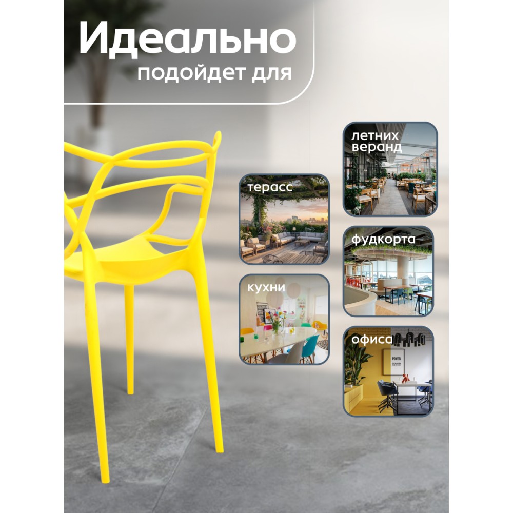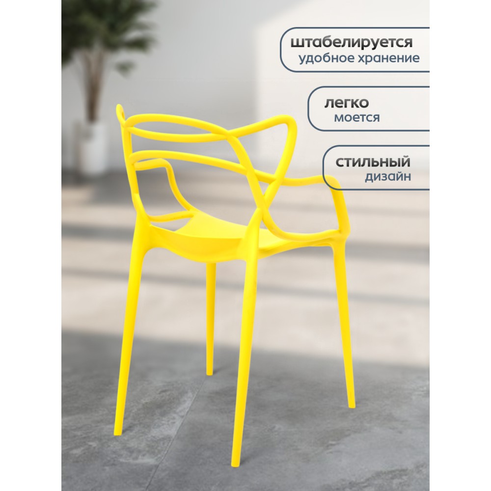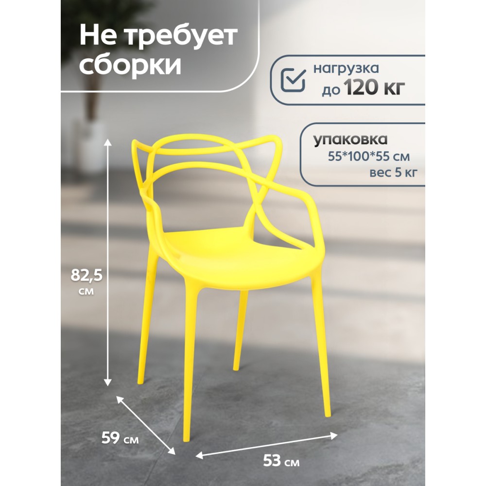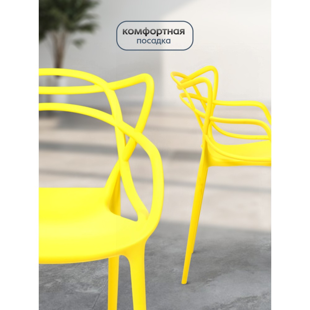 Оригинальный дизайн стула Cat Chair из коллекции Modern вдохновлен творением французского дизайнера Филиппа Старка, который совместно с Евгением Куитлитом разработал пластиковый стул Masters. Дизайнеры создали удачное сочетание трех знаменитых моделей стульев двадцатого века в одном, они объединили стул Series 7 от Арне Якобсена, кресло Tulip Ээро Сааринена и стул Eiffel Чарльза Имза. В итоге получился большой удобный стул с оригинальным дизайном. Стул Cat Chair станет незаменимым предметом интерьера на загородной террасе, приусадебном участке, веранде ресторана или кафе. Удобное сиденье и спинка позволяют комфортно сидеть в течение длительного времени. Стулья Cat Chair можно штабелировать, что позволяет экономить место при хранении. Сиденье стула выполнено из прочного пластика желтого цвета, благодаря чему модель практична, надежна, способна выдерживать большие нагрузки, устойчива к воздействию влаги, температурным перепадам и проста в уходе. Для вашего удобства на сиденье можно дополнительно приобрести декоративную подушку из нашей коллекции текстиля. Стул хорошо подойдет для гостиной, для кухни, для террасы, для дачи, для ресторана или для кафе. Стул поставляется в собранном виде.
