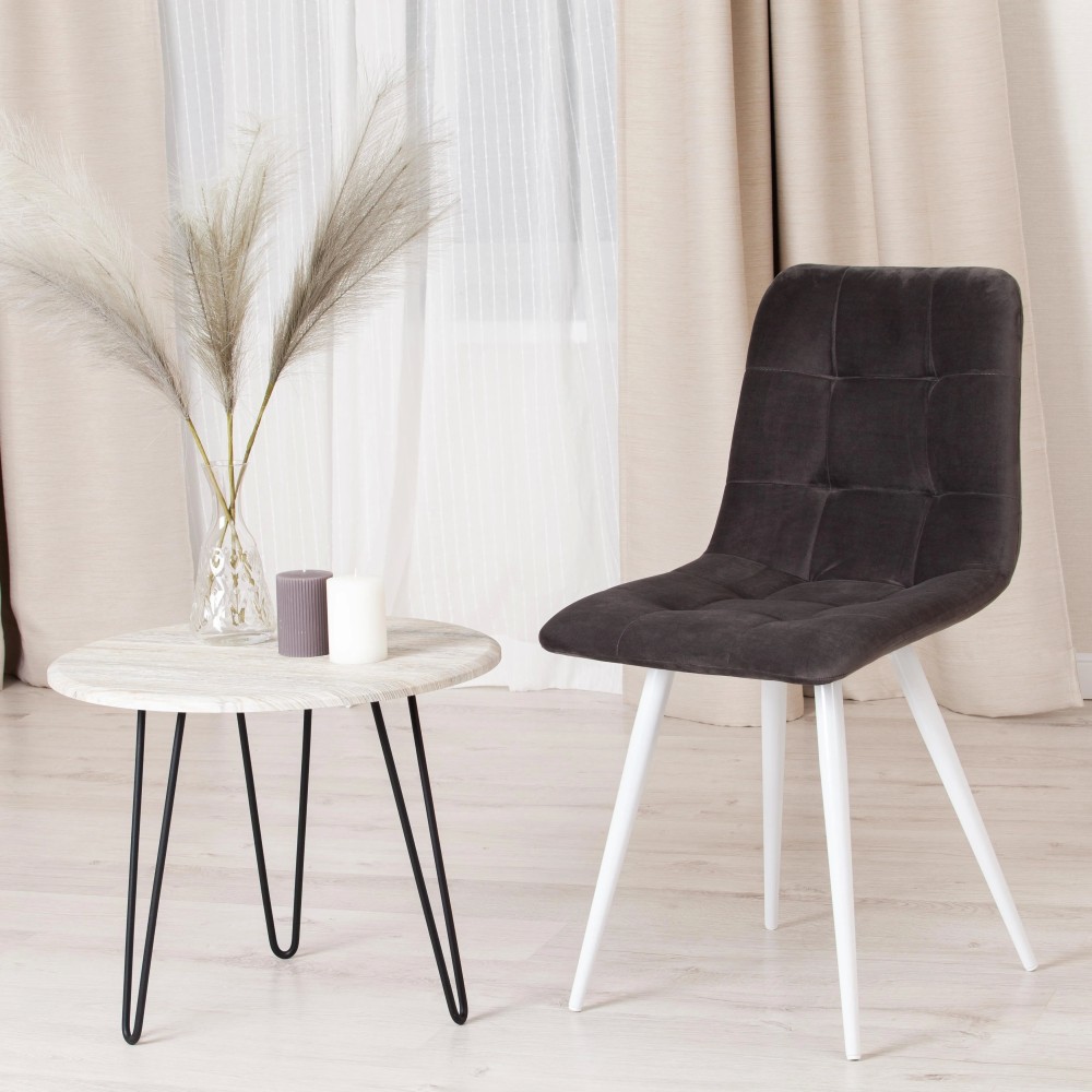 Удобный и практичный дизайн стула CHILLY из коллекции Modern позволит ему вписаться практически в любой интерьер. Стул можно расположить в гостиной, кухне или столовой. Он хорошо подойдет для обстановки городской квартиры, загородного дома, кафе или ресторана. Тонкие металлические ножки белого цвета, стеганая тканевая обивка и лаконичные формы стула идеально соответствуют концепции современного стильного пространства. Мягкое сиденье и спинка позволяют комфортно расположиться на длительное время. Практичная тканевая обивка темно-серого цвета цвета отличается устойчивостью к износу и долговечностью, благодаря чему стул не требует специального ухода и будет долгое время радовать вас своим первоначальным видом. Монолитный каркас изделия выполнен из многослойного гнутоклееного шпона толщиной 10 мм. Наполнение - комбинация пенополиуретанов различной плотности. Стул подойдёт для гостиной, для кухни, для спальни, для ресторана или для кафе. Стул очень прост в сборке, инструкция по сборке прилагается.