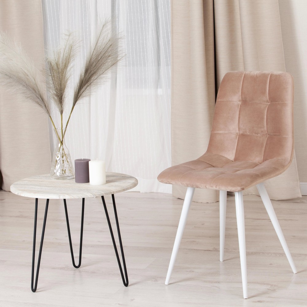 Удобный и практичный дизайн стула CHILLY из коллекции Modern позволит ему вписаться практически в любой интерьер. Стул можно расположить в гостиной, кухне или столовой. Он хорошо подойдет для обстановки городской квартиры, загородного дома, кафе или ресторана. Тонкие металлические ножки белого цвета, стеганая тканевая обивка и лаконичные формы стула идеально соответствуют концепции современного стильного пространства. Мягкое сиденье и спинка позволяют комфортно расположиться на длительное время. Практичная тканевая обивка бежевого цвета отличается устойчивостью к износу и долговечностью, благодаря чему стул не требует специального ухода и будет долгое время радовать вас своим первоначальным видом. Монолитный каркас изделия выполнен из многослойного гнутоклееного шпона толщиной 10 мм. Наполнение - комбинация пенополиуретанов различной плотности. Стул подойдёт для гостиной, для кухни, для спальни, для ресторана или для кафе. Стул очень прост в сборке, инструкция по сборке прилагается.