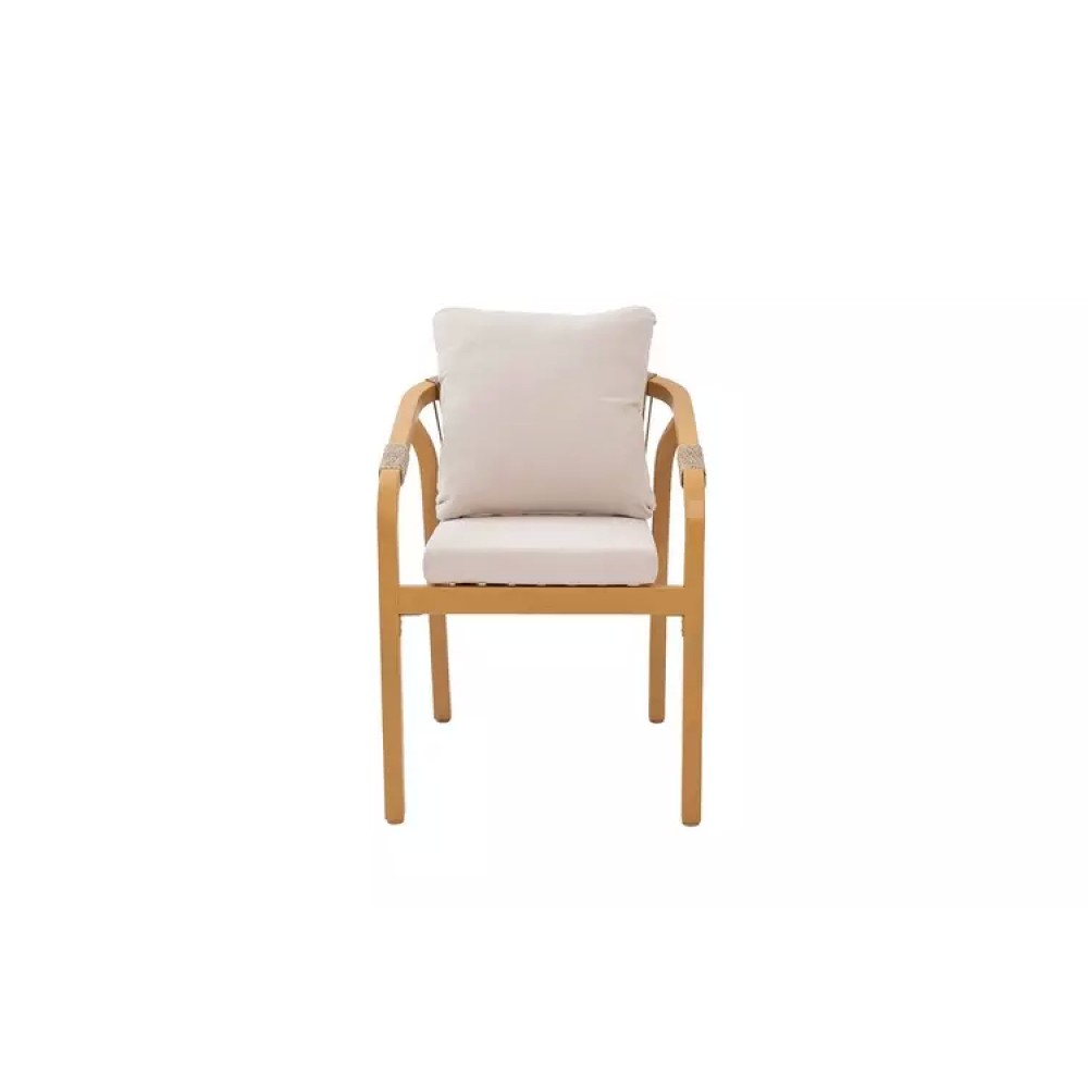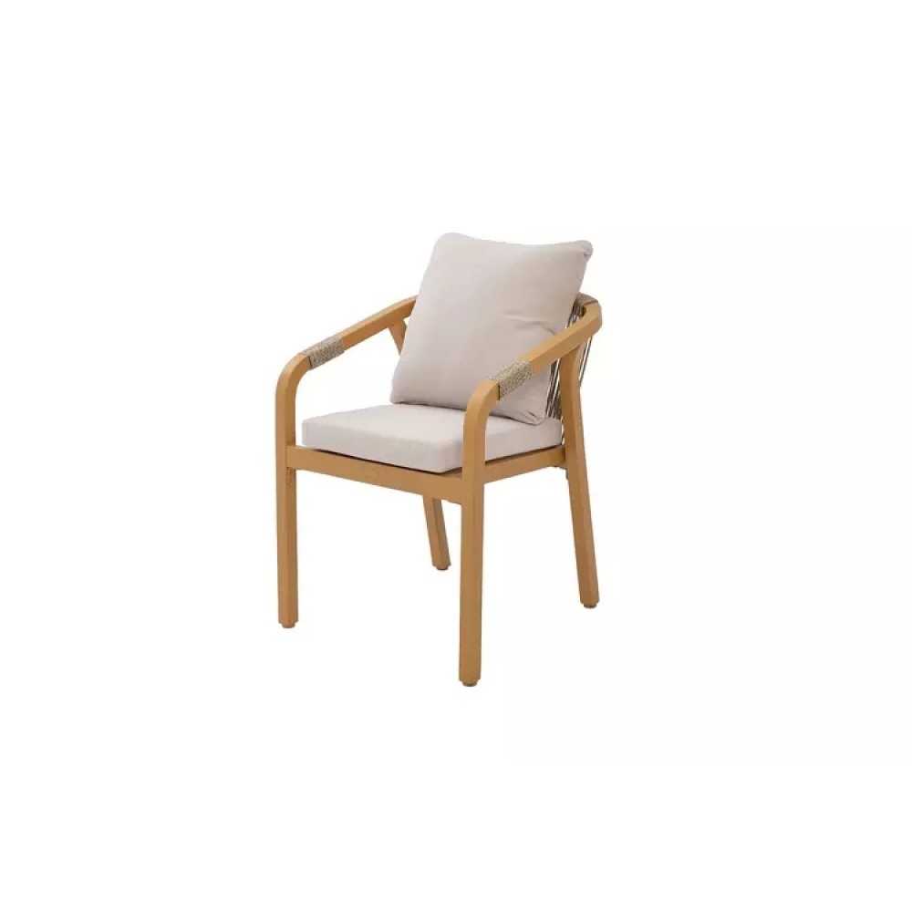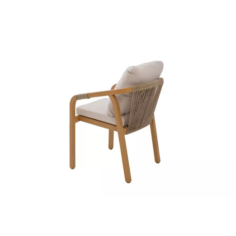 RIMINI – современная коллекция садовой мебели из акации, выполненная в комбинации натурального веревочного плетения rope, массива акации и бежевых подушек.