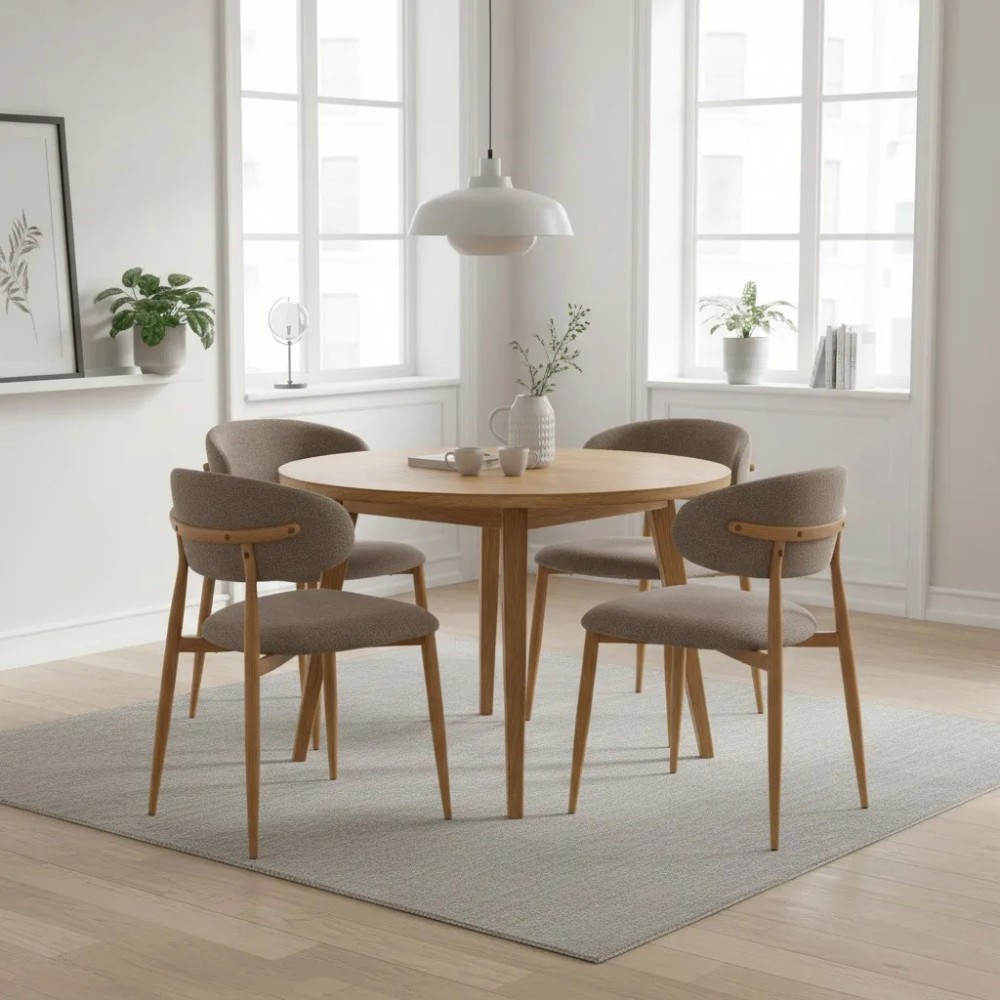 Представляем вашему вниманию обеденный стул Belsay/Белси – идеальное сочетание элегантности, комфорта и функциональности, которое преобразит любое пространство. Стул станет настоящим украшением вашей столовой, кухни, домашнего офиса или кафе. Идеально впишется в квартиру или загородный дом. Стул Belsay/Белси выполнен в современном минималистичном дизайне, который легко впишется в любой интерьер. Его плавные линии и изысканные материалы создают атмосферу уюта и стиля. Лаконичный силуэт стула сочетает в себе визуальную легкость и выразительность. Плавно изогнутая спинка и мягко скругленное сиденье формируют гармоничный и сбалансированный образ. Светло-коричневый текстурный велюр придает модели глубину, теплоту и тактильный комфорт, а металлические опоры цвета натуральное дерево отлично впишутся в любой интерьер. Слегка выдвинутые наружу заостренные опоры создают устойчивый и динамичный силуэт, делая стул стильным акцентом как в домашнем, так и в коммерческом пространстве. Обивка: Сиденье и плавно изогнутая спинка обиты высококачественной тканью велюр меланж светло-коричневого цвета. Этот материал не только приятен на ощупь, но и обладает высокой износостойкостью, что гарантирует долгий срок службы стула. Обивка из текстурного велюра придает стулу особую глубину и теплоту, делая его еще более привлекательным. Каркас и опоры: Каркас стула выполнен из прочного металла и имеет качественное покрытие, имитирующее натуральное дерево (термотрансферное) опор составляет 32 мм, а толщина металла – 1,0 мм, что гарантирует устойчивость и долговечность. На опорах стула предусмотрены регулируемые подпятники, которые предотвращают появление царапин на полу и обеспечивают устойчивость стула даже на неровных поверхностях. Каркас стула является разборным, что значительно упрощает его транспортировку и хранение. Эргономика: Конструкция стула продумана с учетом анатомических особенностей посадки. Плавно изогнутая спинка поддерживает естественное положение спины, снижая нагрузку при длительном сидении. Округлые контуры сиденья обеспечивают комфортную посадку без ощущения жесткости. Высота от пола до сиденья составляет 47,5 см — оптимальный показатель для большинства обеденных столов, обеспечивающий удобное положение ног и правильную осанку. Глубина сиденья 45,5 см и ширина 51 см создают достаточное пространство для комфортного размещения. Максимальная нагрузка: Стул выдерживает нагрузку до 120 кг, что подтверждает его прочность и надежность. Комплектация: Стулья продаются комплектами по 4 штуки, что удобно для обустройства обеденной зоны. Стул поставляется в разобранном виде и комплектуется подробной инструкцией по сборке, что обеспечивает быструю и удобную установку без лишних сложностей.