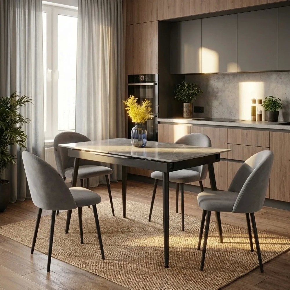 Стул обеденный Мелоди/ Melody выполнен в современном стиле и отлично подходит для кухни, гостиной, столовой, кафе и ресторанов. Благодаря универсальному дизайну модель легко вписывается в современные интерьеры и коммерческие пространства. Стул имеет прочный металлический каркас и устойчивые П-образные опоры с порошковым покрытием, которое защищает металл от царапин и коррозии, что значительно увеличивает срок службы изделия. На ножках установлены пластиковые подпятники, которые защищают напольное покрытие от повреждений и делают использование стула более комфортным. Обивка выполнена из износостойкого велюра 50 000 циклов на истирания, поэтому стул подходит не только для домашнего использования, но и для кафе, ресторанов и офисов с высокой нагрузкой. Сиденье и спинка мягкие и удобные благодаря наполнителю из пенополиуретана: плотность наполнителя спинки составляет 35–45 кг/м³, сиденья — 22–40 кг/м³, что обеспечивает комфортную посадку и сохранение формы при длительной эксплуатации. Толщина наполнителя спинки — 35–45 мм, сиденья — 22–40 мм, благодаря чему стул удобен даже при длительном сидении. Конструкция стула рассчитана на нагрузку до 120 кг, при этом модель имеет легкую сборку, что удобно при транспортировке и хранении. Стул не регулируется по высоте и не штабелируется. Поставляется в упаковке по 4 штуки. Стул обеденный Мелоди/ Melody сочетает в себе современный дизайн, прочность, износостойкость и комфорт, что делает его отличным решением для дома и бизнеса.