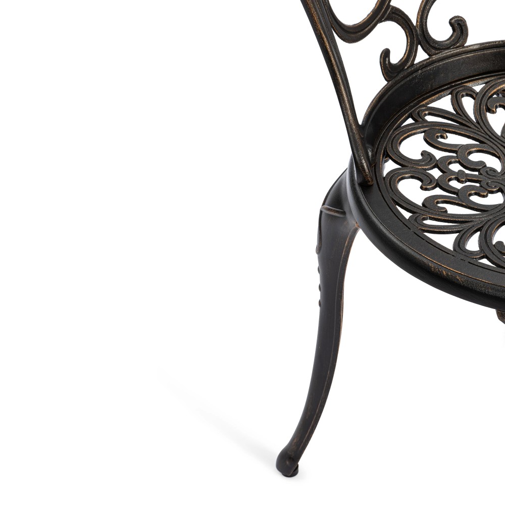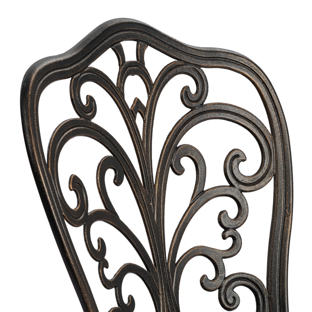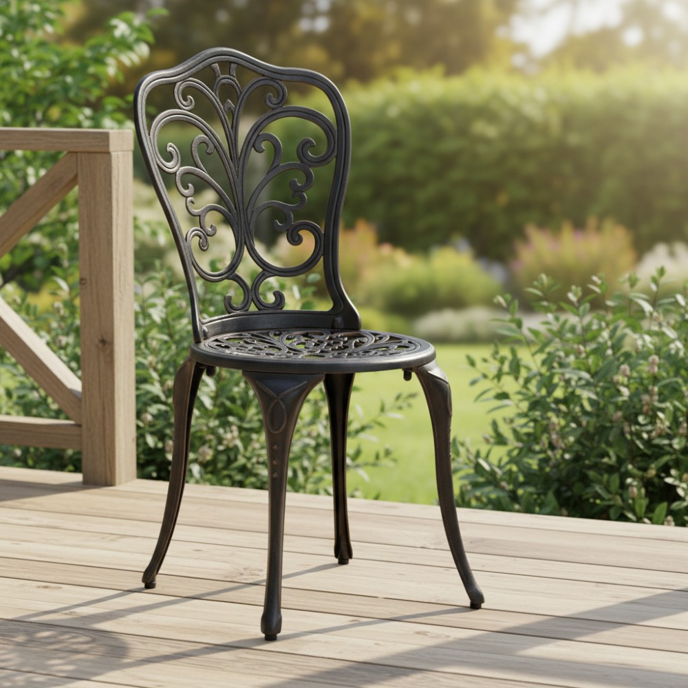 Стул Mozart/Моцарт — изысканный акцент в вашем саду Изящный садовый стул Mozart/Моцарт выполнен из прочного литого алюминия и станет стильным дополнением к зоне отдыха на даче, террасе или в саду. Его элегантный дизайн гармонично сочетается как с классическим, так и с современным ландшафтным оформлением. Плавные витиеватые изгибы кованых узоров, выполненных вручную, формируют неповторимый декоративный облик изделия. Художественная обработка металла придает стулу визуальную лёгкость, утончённость и благородство. Стул Mozart/Моцарт способен стать любимым элементом садовой мебели, без которого трудно представить комфортный отдых на свежем воздухе. Эргономичная спинка обеспечивает удобную поддержку и позволяет расположиться с комфортом даже во время продолжительного отдыха. Конструкция продумана до мелочей, чтобы сочетать эстетику и функциональность. Стул отличается высокой прочностью и надёжностью. Каркас из литого алюминия устойчив к коррозии, влаге, перепадам температур и ультрафиолету. Модель выдерживает значительные нагрузки, проста в уходе и сохраняет презентабельный внешний вид на долгие годы. Преимущества стула Mozart/Моцарт: прочный каркас из литого алюминия, декоративные кованые узоры ручной работы, устойчивость к любым погодным условиям, эргономичная удобная спинка, долговечность и простота ухода. Стул поставляется в разобранном виде, что обеспечивает удобство транспортировки и быструю сборку. Садовый стул Mozart/Моцарт — это гармоничное сочетание элегантности, практичности и долговечности для вашего комфортного отдыха. Модель поставляется в разобранном виде, что обеспечивает удобство транспортировки и быструю сборку.