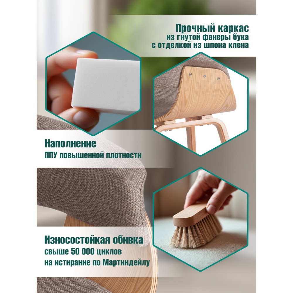 Стул VIMTA - это идеальное сочетание элегантности и комфорта, вдохновленное стильными решениями американских дизайнеров середины XX века. Его элегантная форма, выполненная из гнутой фанеры бука с отделкой из шпона клена, придаёт атмосфере естественность и теплоту. Обивка стула, выполненная из качественной рогожки, не только радует взгляд, но также отличается высокой износостойкостью (до 50 000 циклов по шкале Мартиндейла), что гарантирует долгий срок службы и лёгкость в уходе. Удобные формы спинки и сиденья дарят комфорт даже при длительном использовании, позволяя расслабиться и насладиться моментом. Широко расставленные прочные ножки обеспечивают надежность и устойчивость модели, что делает её идеальным выбором как для домашнего пространства, так и для коммерческих заведений. Стул VIMTA выдерживает нагрузку до 120 кг, что делает его подходящим для различных пользователей. Это не просто предмет мебели, а стильное решение, которое добавит изюминку в ваш интерьер. Инструкция по сборке прилагается, что облегчает процесс установки.