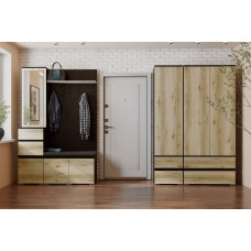 Комплект мебели из коллекции Денвер прекрасно подойдет для прихожей со свободным углом. Угловой шкаф с завершением, комбинированный шкаф-пенал с зеркалом и пенал с выдвижным пуфом, открытая вешалка с сиденьем - все Ваши вещи найдут свое место и будут..