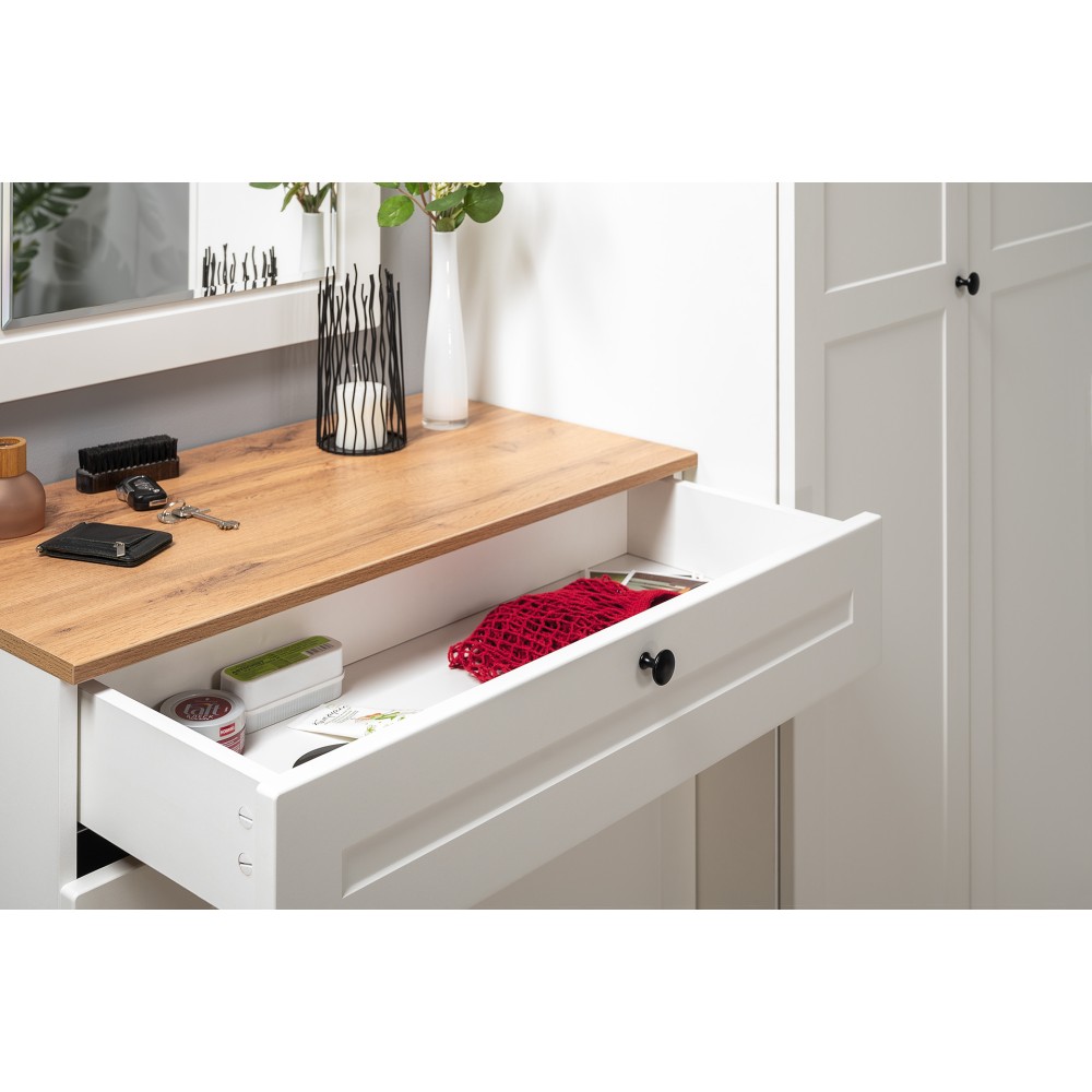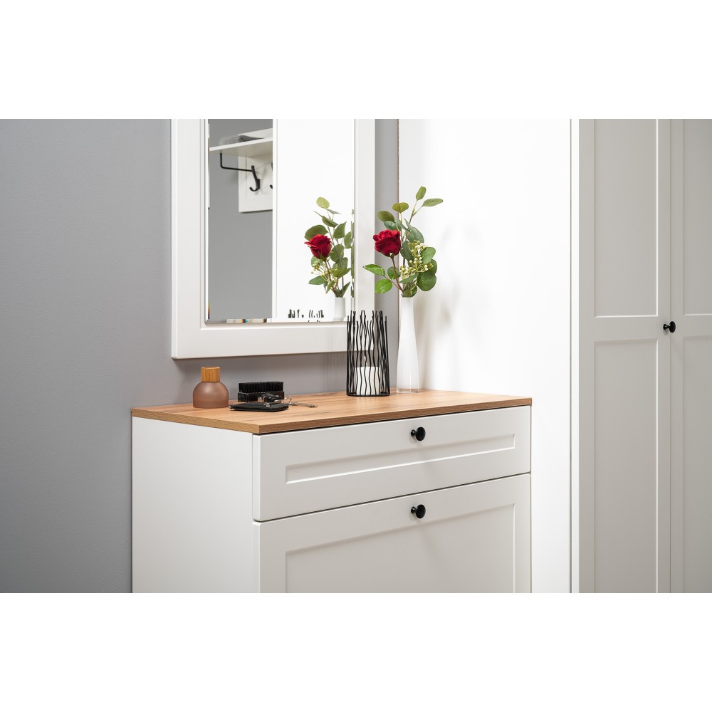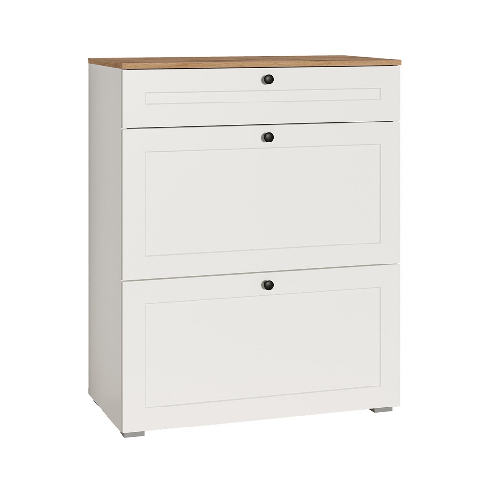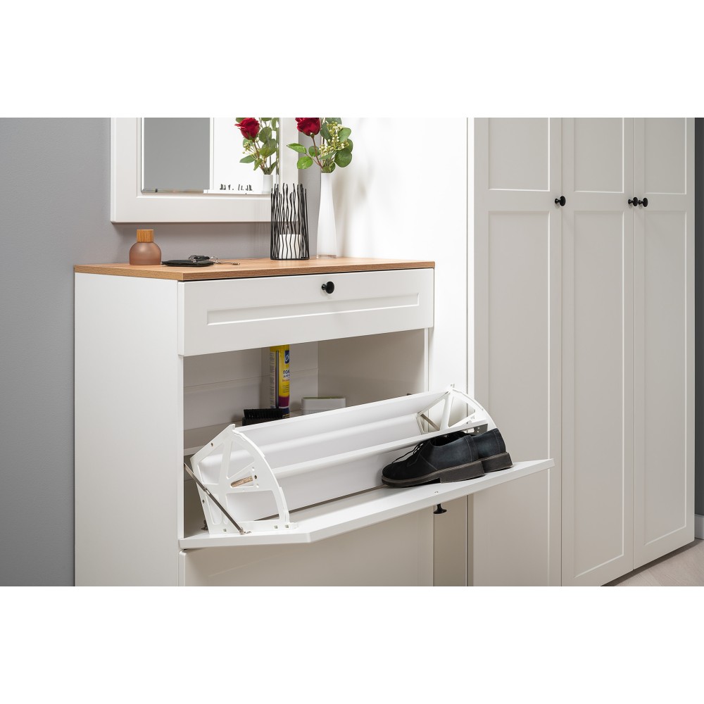 Тумба для обуви Остин В комплект входит фурнитура, металлические ручки и регулируемые опоры.