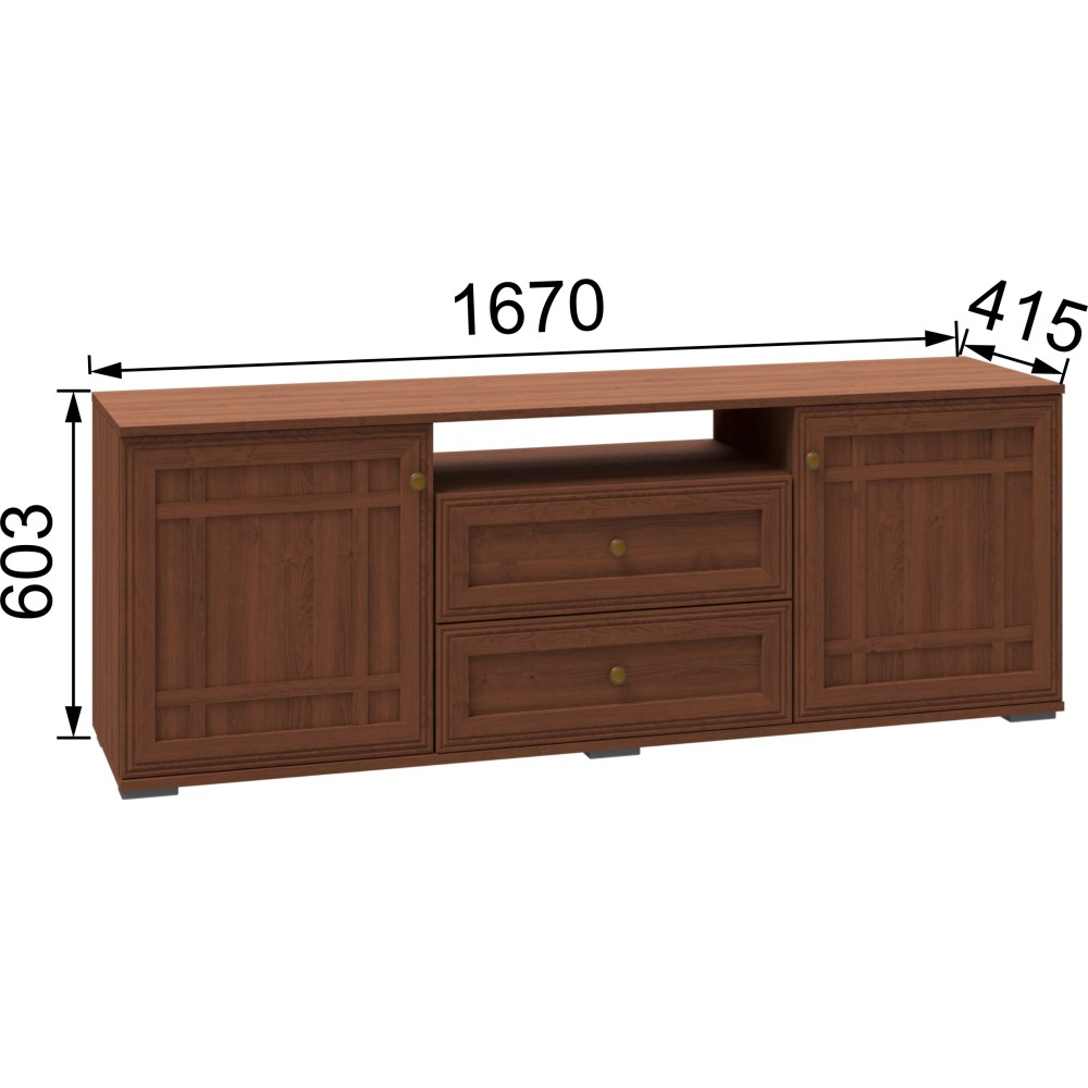 Тумба под ТВ «Ричард», выполненная в единой стилистике коллекции, станет выразительным акцентом и функциональным центром гостиной. Просторная верхняя поверхность предназначена для размещения телевизора и дополнительной техники, обеспечивая удобство и аккуратность в организации пространства.