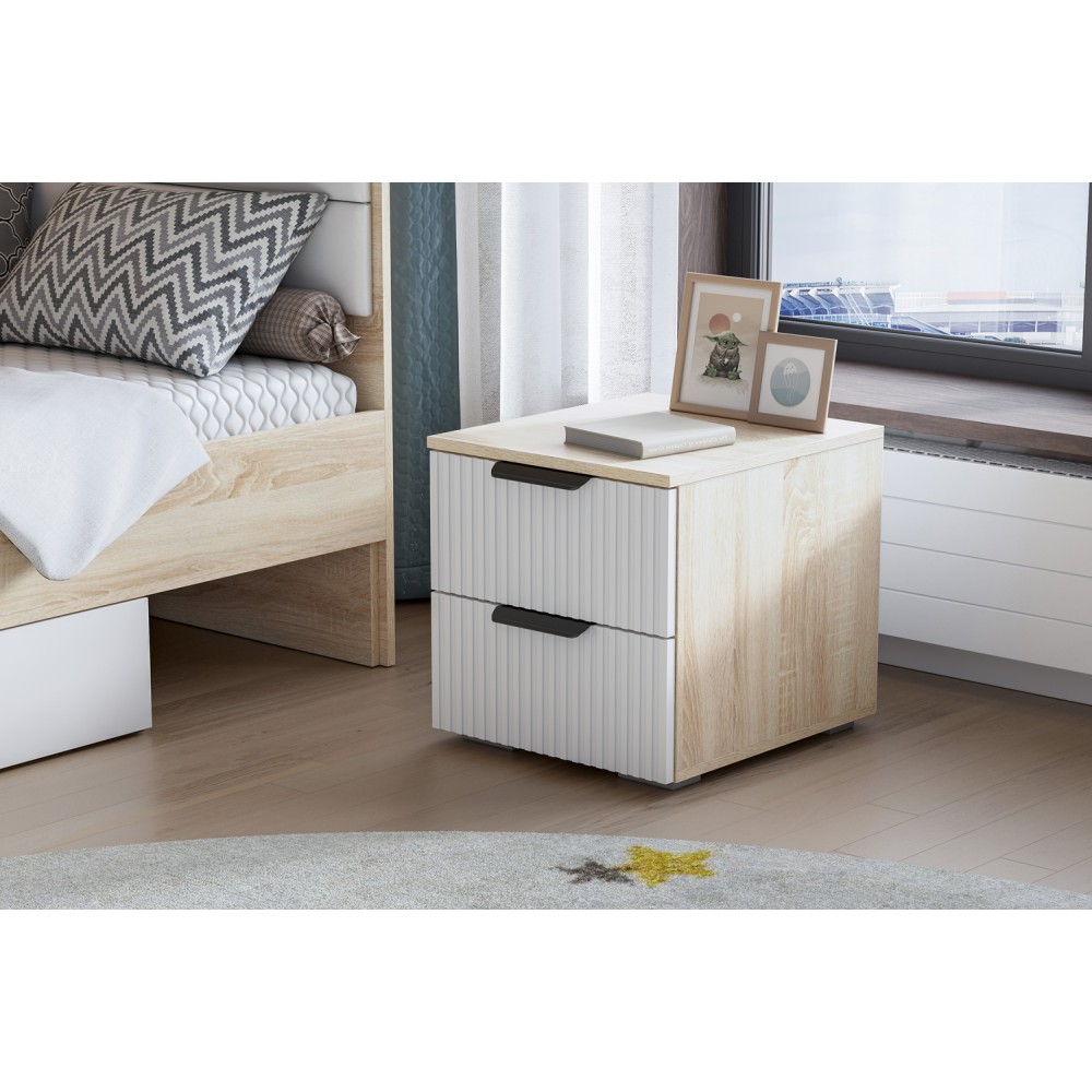 Тумба прикроватная - это стильный и функциональный элемент мебели, который идеально дополнит вашу спальню и обеспечит удобство в повседневном использовании. Ее компактные размеры делают её удобной для размещения рядом с кроватью, а два просторных ящика предоставят достаточно места для хранения мелочей и прочих аксессуаров.