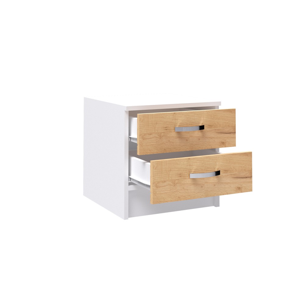 Компактная и удобная по высоте, тумба оснащена двумя выдвижными ящиками, обеспечивающими удобное хранение необходимых мелочей. Всё самое нужное всегда будет под рукой, а верхнюю поверхность можно использовать для размещения лампы, будильника, фоторамок или гаджетов, создавая уютную и функциональную зону рядом с кроватью.