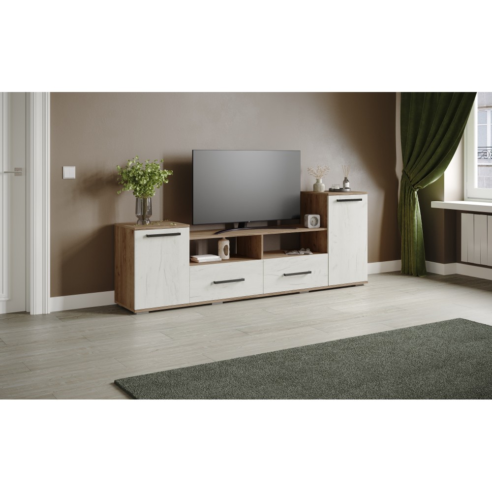 Тумба под телевизор Парус-2 станет модным решением для гостиной. Это не только модуль по телеаппаратуру, это также зона для хранения книг, журналов и аксессуаров для ТВ.