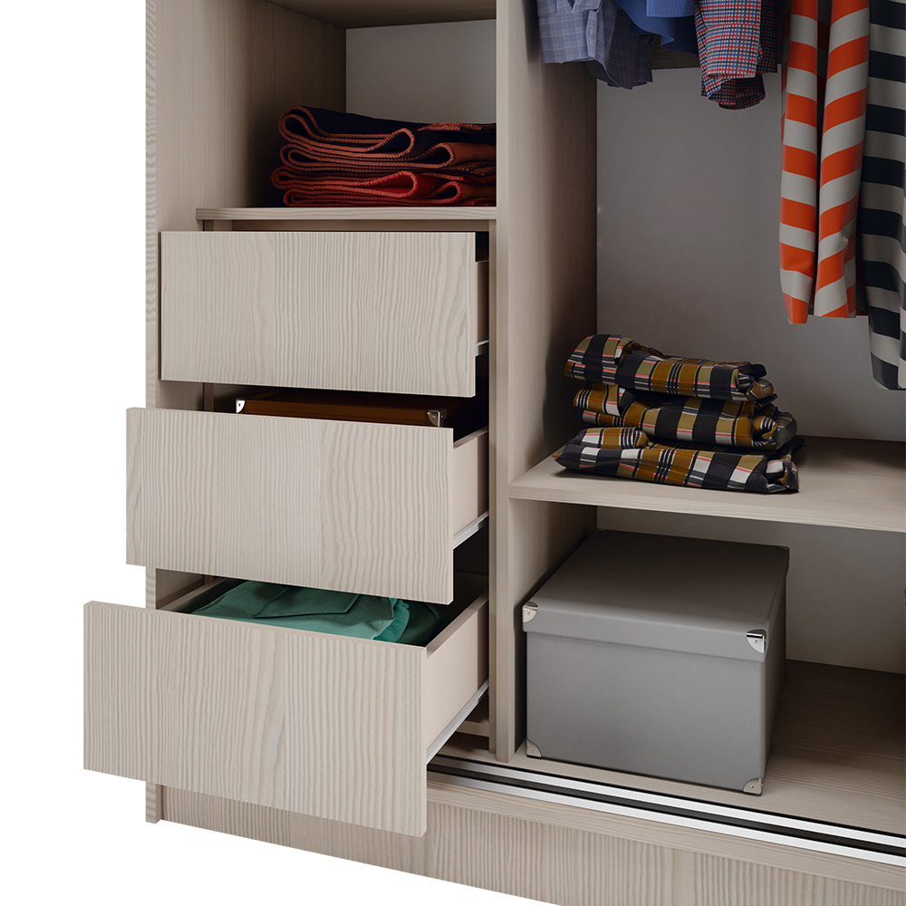 Тумба Тринити в шкаф-купе — это функциональный элемент мебели, который помогает организовать пространство и хранить вещи. Она имеет несколько ящиков для удобства.