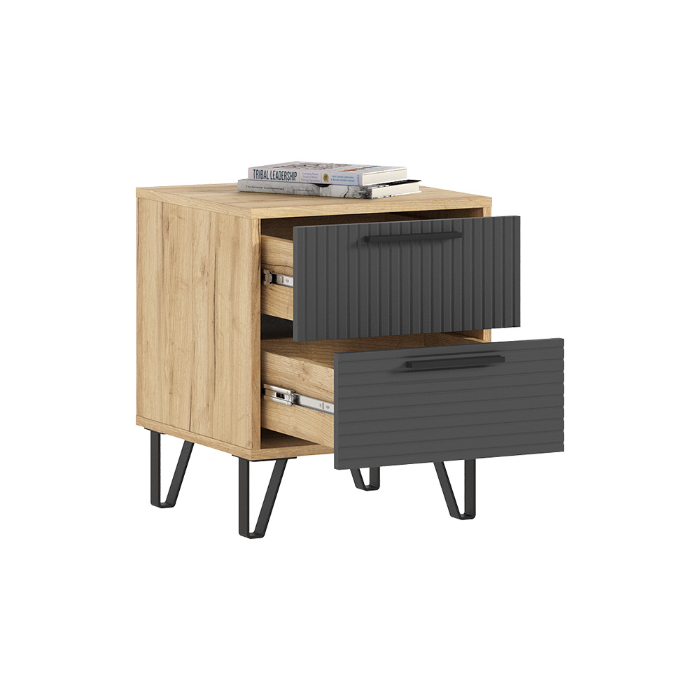 Тумба Флэш - это стильный и функциональный элемент мебели, который идеально дополнит вашу спальню и обеспечит удобство в повседневном использовании. Ее компактные размеры делают её удобной для размещения рядом с кроватью, а два просторных ящика предоставят достаточно места для хранения мелочей и прочих аксессуаров.