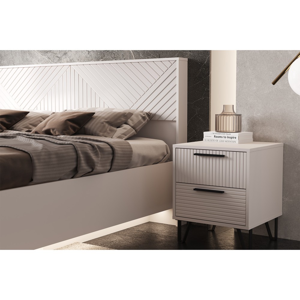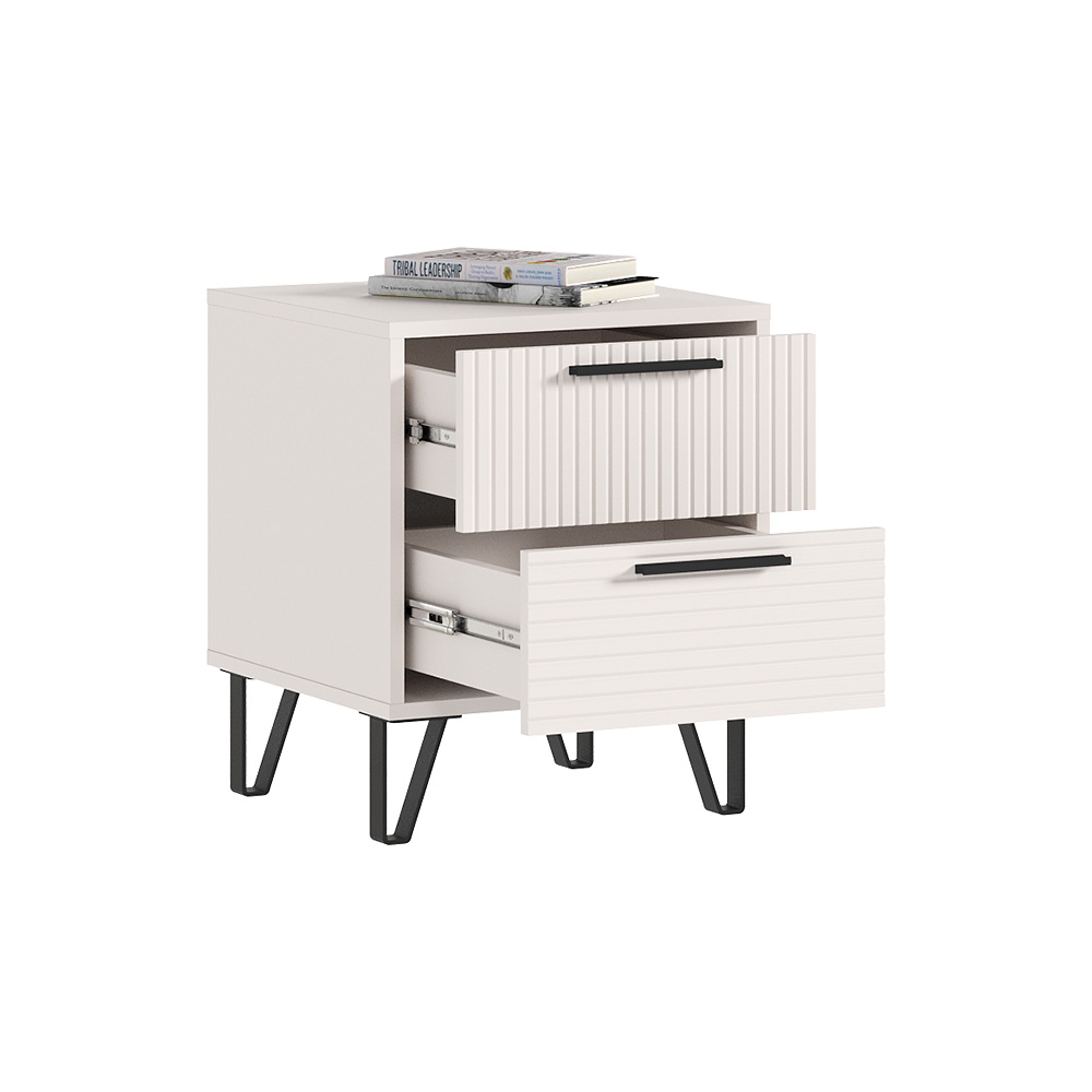 Тумба Флэш - это стильный и функциональный элемент мебели, который идеально дополнит вашу спальню и обеспечит удобство в повседневном использовании. Ее компактные размеры делают её удобной для размещения рядом с кроватью, а два просторных ящика предоставят достаточно места для хранения мелочей и прочих аксессуаров.