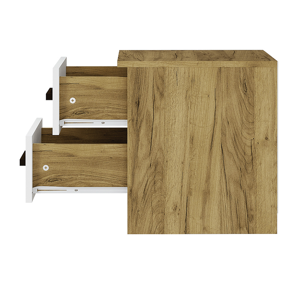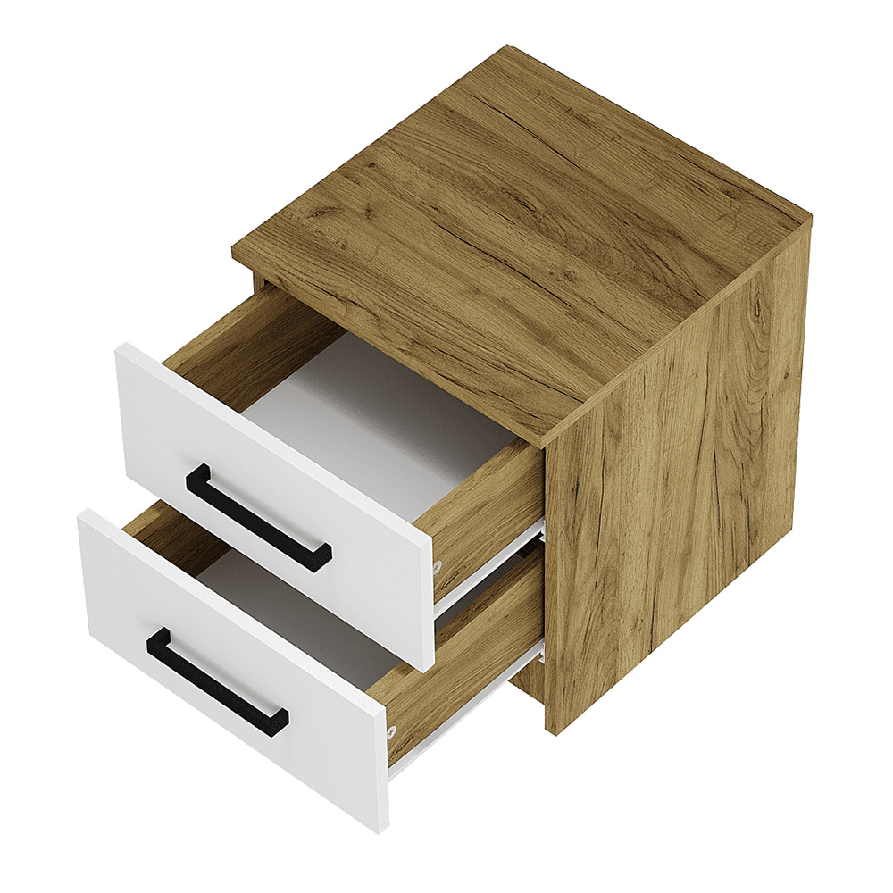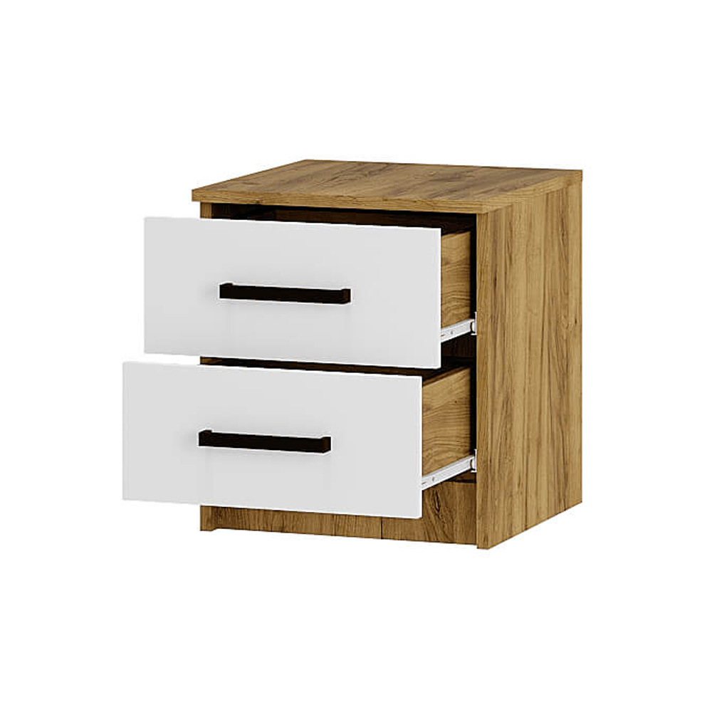 Небольшая прикроватная тумба «Евро» - то, что нужно для спальни. Два ящика, декорированных белыми панелями, станут отличным местом для хранения самых нужных вещей. Верхняя панель может использоваться как полка для дополнительных источников освещения или предметов, которые всегда должны быть под рукой.