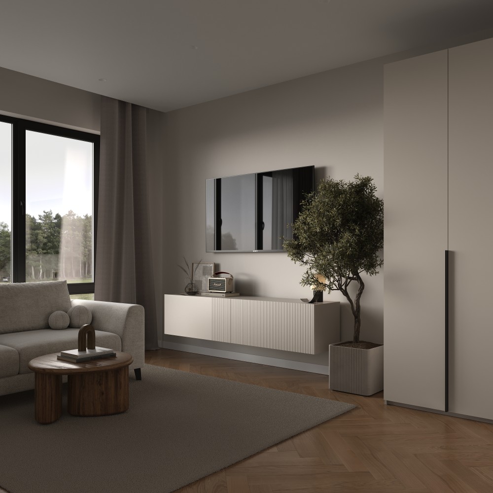 ТВ-тумба Шарлотта 150 Кашемир серый — элемент модульной мебели, предназначенный для рациональной организации пространства. Модель может использоваться как самостоятельный предмет или в составе мебельной композиции. Продуманная конструкция обеспечивает удобство эксплуатации. Подходит для различных жилых помещений.