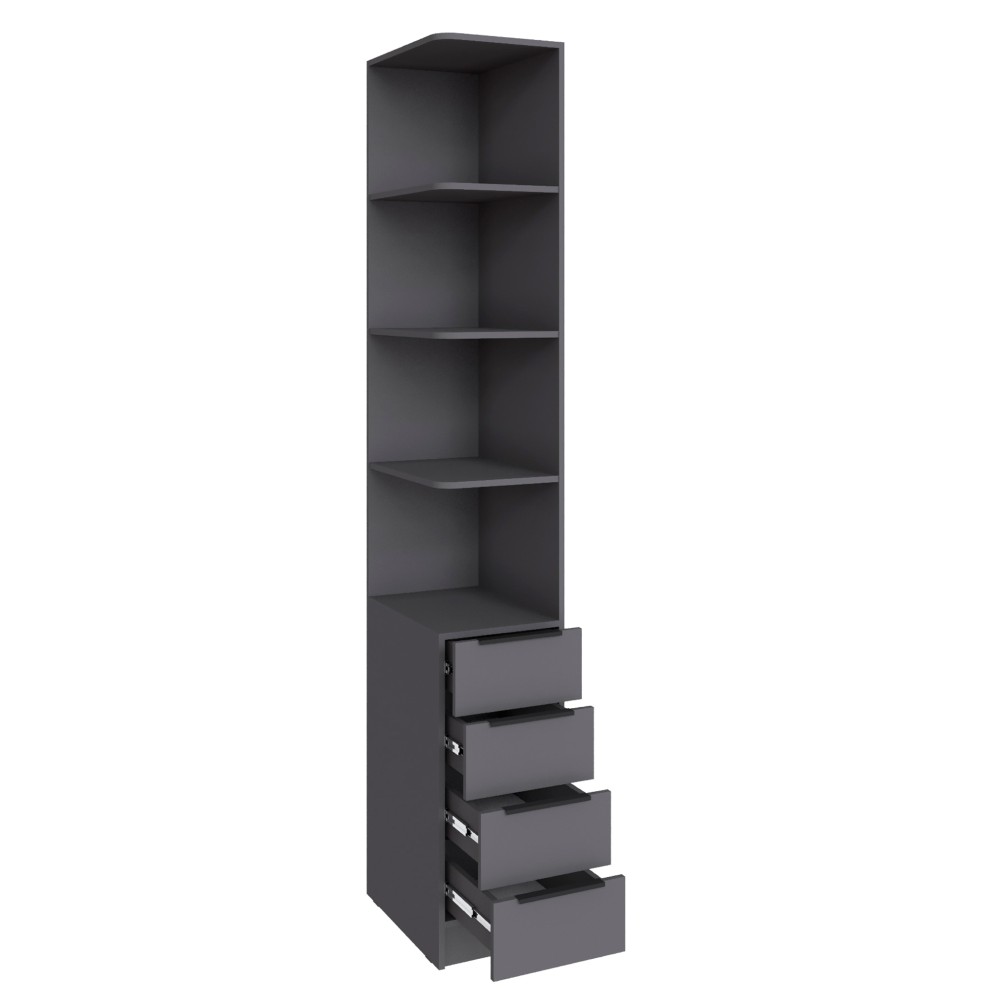 Угловое завершение из коллекции Мадрид выступит дополнением к основной шкафной группе и подарит дополнительное место для хранения различных вещей: книг, цветов, предметов декора и памятных вещиц, которые должны быть на виду. Благодаря большому количеству полок, все Ваши вещи найдут место и будут содержаться в порядке.