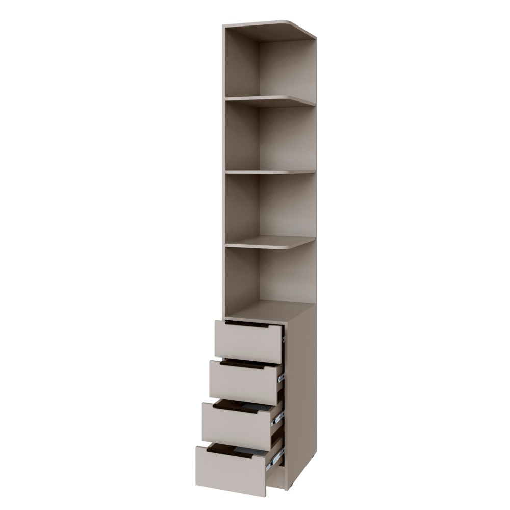 Угловое завершение из коллекции Мадрид выступит дополнением к основной шкафной группе и подарит дополнительное место для хранения различных вещей: книг, цветов, предметов декора и памятных вещиц, которые должны быть на виду. Благодаря большому количеству полок, все Ваши вещи найдут место и будут содержаться в порядке.
