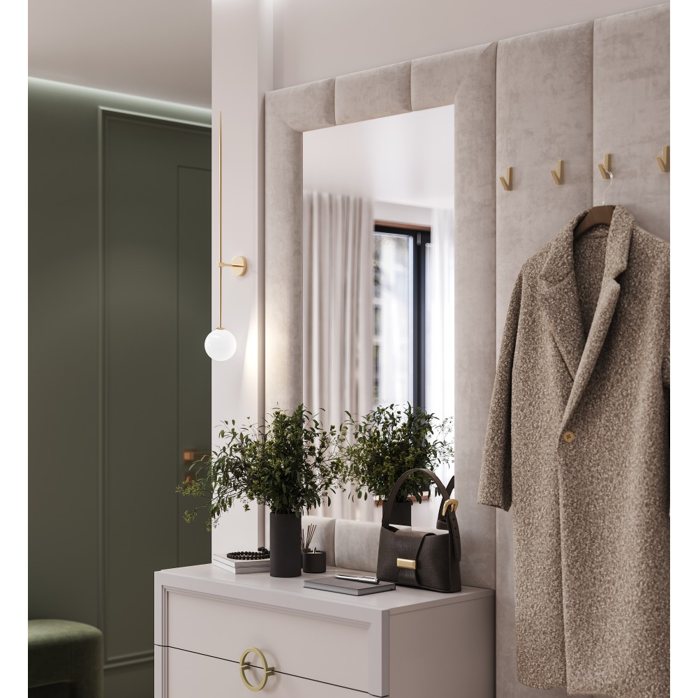 Зеркало "Эстетика" - стильный и функциональный предмет интерьера. Мягкая часть - мебельная ткань "мокко". Крепление к стене - навес плоский.